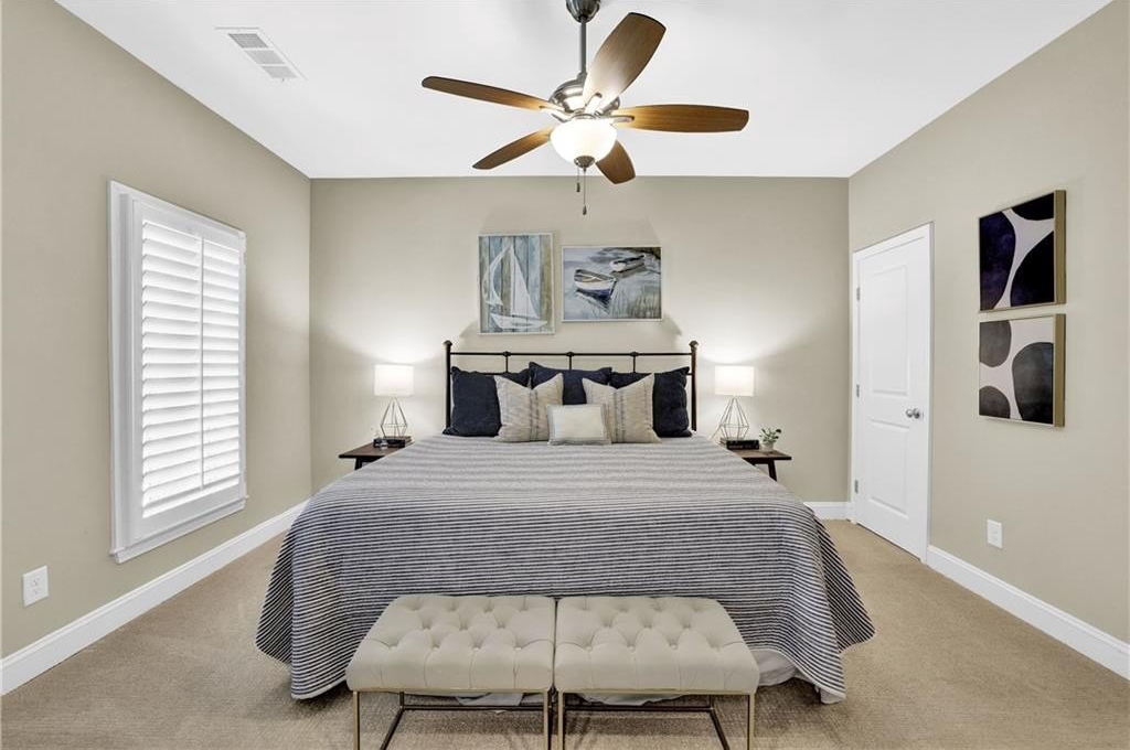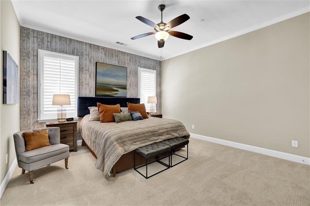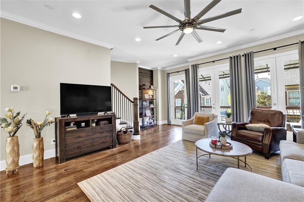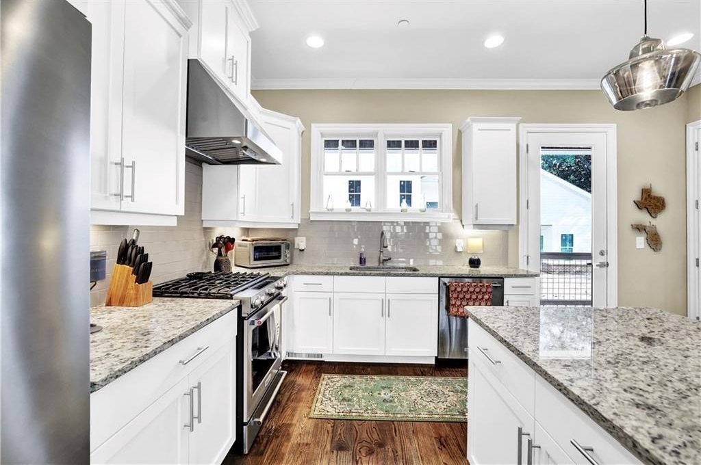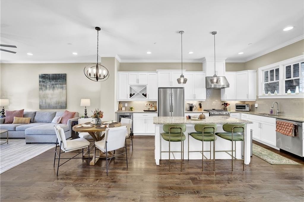 Come see this One of a one-of-a-kind beauty where timeless design meets everyday luxury in the heart of Manget, just a stroll from the charm and energy of Marietta Square. This stunning 3-bedroom, 3.5-bath Craftsman townhome offers a beautifully appointed living space designed for both entertaining and relaxation. Inside, you’ll find an airy open-concept layout with natural light pouring through French doors and wide windows. The heart of the home is the designer kitchen, featuring crisp white cabinetry, granite countertops, stainless steel appliances, and a built-in wine fridge, all centered around an oversized island with plenty of seating. Two covered porches, front and back, invite gatherings, barbecues, or lazy Sunday mornings with coffee. Upstairs, the primary suite is a peaceful retreat with a spa-inspired bath complete with soaking tub, glass shower, and double vanities. The custom closet is a dream. The top floor also features a secondary ensuite bedroom and convenient laundry. On the terrace level, you'll find a third bedroom with its own full bath, perfect for a guest room or private office. This level also includes a drop zone/mudroom, generous storage, and direct access to the 2-car garage. Beyond your door, enjoy a friendly, walkable community with a shared firepit and unbeatable access to dining, shopping, parks, and the historic Marietta Square.