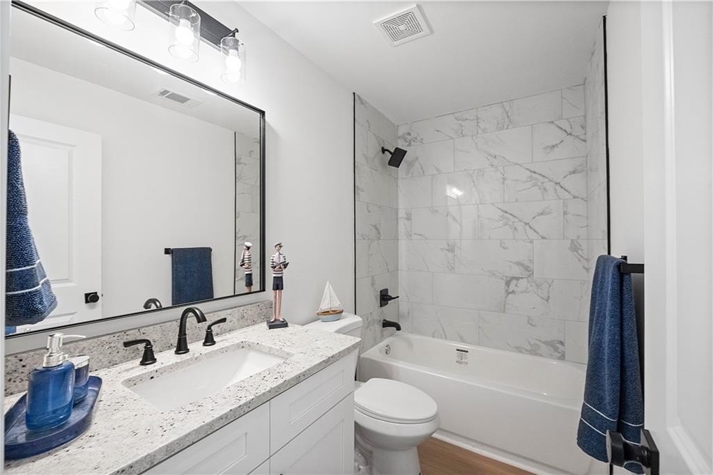 Premium luxury vinyl flooring and a modern insert fireplace turn the light filled living room into a magazine spread. Overlooking a showpiece eat-in kitchen island, perfect for morning coffee, homework time, or evening wine. Beautiful stone countertops, stainless-steel appliances, white shaker cabinetry, and generous storage plus a walk in pantry. The main level flows seamlessly to a spacious back deck, in a fenced in green backyard space, perfect for outdoor dining and entertaining. Upstairs, a versatile loft offers the ideal space for a second living area, office, media room, or wellness/yoga retreat. Your bedroom should feel like an escape, this one feels like a destination. The oversized primary suite impresses with a massive bedroom, en-suite walk-in bath zone, dual showers, a separate stand-alone modern soaking tub, and double vanities. The upstairs laundry room includes cabinetry, countertop space for folding, and still enough room to leave your ironing board permanently open and ready. With 5 bedrooms, including a main-level guest suite, this home offers flexibility for work, play, and guests. Additional features include a 2-car garage, and a driveway accommodating up to three additional vehicles. For the buyer who wants mornings wrapped in sunlight, weekends on the BeltLine or the Chattahoochee River, dinners at Upper Westside hotspots, and a home that feels like a boutique hotel every single day. You’re in one of Atlanta’s most vibrant and evolving ITP neighborhoods, moments from the Chattahoochee River, Westside Park and Trail and the BeltLine Connector, Upper Westside hotspots, and all the stylish boutiques, breweries, food halls, and cafés that make this side of the city so magnetic. Midtown, Mercedes Benz stadium and Centennial Park are just minutes away, and access to major highways keeps every corner of Atlanta within easy reach. Yes—location, location, location truly hits different here.