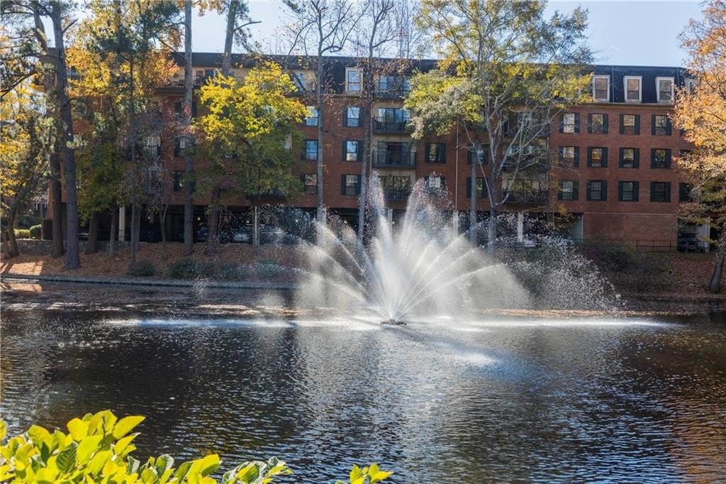Large second floor 2 bedroom condo in popular Plantation at Lenox with peaceful view directly overlooking the pond & fountain from private balcony. Huge, bright living space features fireplace & built-in dry bar, and is open to kitchen and dining room. Beautiful wood flooring throughout, including bedrooms, and all walls freshly painted. Kitchen features white cabinets, modern task lighting, and updated stainless steel appliances. Two spacious bedroom suites on opposite sides of living room with ample closets featuring built-in organization. Well-maintained tiled bathrooms with spacious, separate vanity areas. Laundry closet with full-size washer/dryer included. 2 covered and assigned tandem parking spaces plus plenty of visitor parking. Gated entrance with attendant and beautiful pool and fitness amenities plus vast natural areas with meticulously landscaped walking paths, gardens, sitting areas, and water features unmatched within city limits. Building 28000 is the only building in the community with on-site concierge in lobby. Property exit located at traffic light for easy left turns onto Lenox Road. HOA includes internet, cable and water at tremendous value. CURRENTLY NO WAIT LIST FOR LEASING IF INTERESTED FOR INVESTMENT!