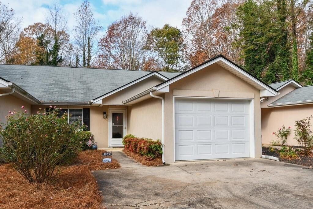 Don't miss this 2 bedroom 2 bath, walk-in-closets in both bedrooms, spacious kitchen, open floor plan, large living room with vaulted ceiling leading out to a nice patio that back up to a wooded area. Private backyard with privacy fencing between units. Large laundry room with ample storage options, , 1 car garage stepless ranch villa on 0.21 acres. This terrific one level home offers low maintenance and easy living with unbelievably low HOA fees that include lawn care and termite bond. Freshly painted interior, new roof and new carpet. Don't miss a great opportunity at affordable living. Very convenient to Gainesville, Dawsonville , Dahlonega, Lake Lanier and the Blue Ridge Mountains.