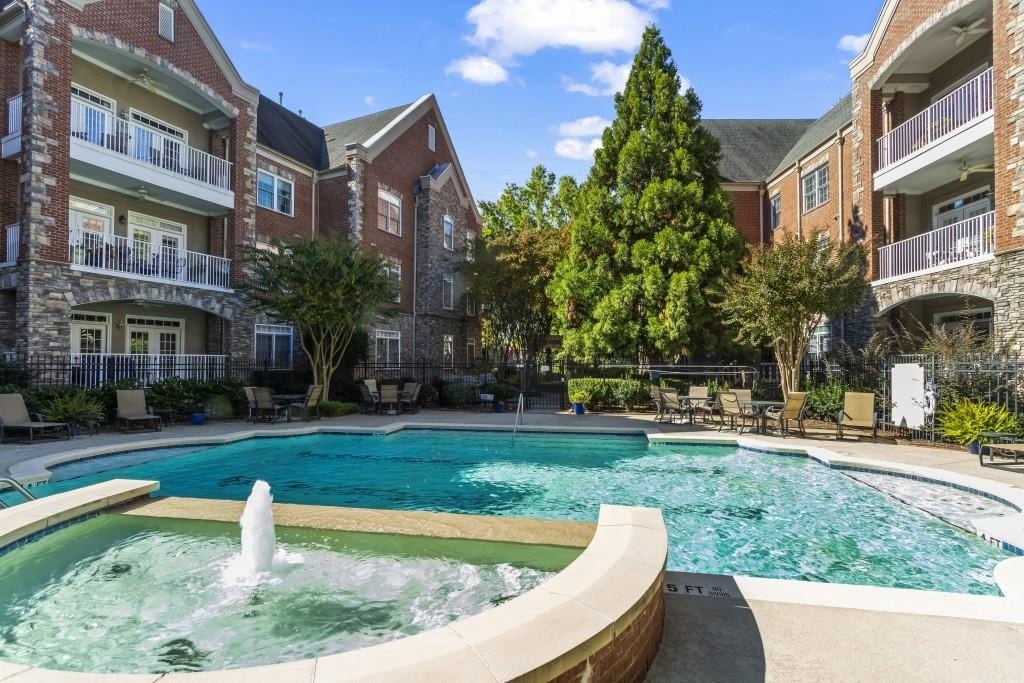 Beautifully curated, character-filled condo in one of Decatur's most desirable communities. This first-floor home sits one level above ground, offering elevated privacy, abundant natural light, and the convenience of main-level living. Thoughtful architectural details-10' ceilings, stained-in-place hardwood floors, plantation shutters, new windows (2025), and classic millwork-create a warm, welcoming feel that's perfect for simplifying without sacrificing quality or style. The fireside living room opens to a spacious covered patio, creating an easy indoor-outdoor flow that lives like a much larger home. The flexible dining room with tray ceiling functions equally well as a home office or library, giving you the ability to right-size your spaces while keeping the rooms you still love to use. The updated kitchen includes 2024 stainless appliances, granite counters and backsplash, a gas range with hood, an oversized island with seating, built-in wine rack, a walk-in pantry, and ample cabinetry with Rev-A-Shelf systems-ideal for staying organized with ease. A keeping room with a decorative fireplace and custom built-ins offers a comfortable additional living area, perfect for morning coffee, reading, or intimate gatherings. The generous primary suite features a trey ceiling, seating area, California Closet system, and a renovated bathroom with a quartz double vanity, upgraded lighting, and a newly refinished shower with upgraded tile and plumbing fixtures. An additional storage closet can be converted into a second clothes closet for even more wardrobe space. The secondary suite includes a custom Murphy bed with an integrated desk and storage, a California Closet system, and a spacious hall bath with linen storage-perfect for guests without giving up a dedicated office or hobby room. Practical upgrades include a true laundry room with cabinetry, upgraded lighting, enhanced built-ins, a Phantom screen, and two deeded covered parking spaces. Residents enjoy a swimming pool, fitness center, club room, media room, library, and dog park, along with an active HOA offering book clubs, Mahjong, Bunco, weekly happy hours, and more-ideal for those seeking connection and community with low-maintenance living. Exceptional location close to the Decatur Square, Glenlake Park, restaurants, shops, walking paths, and MARTA. A rare opportunity to enjoy simplified, well-appointed living in the heart of Intown Decatur.