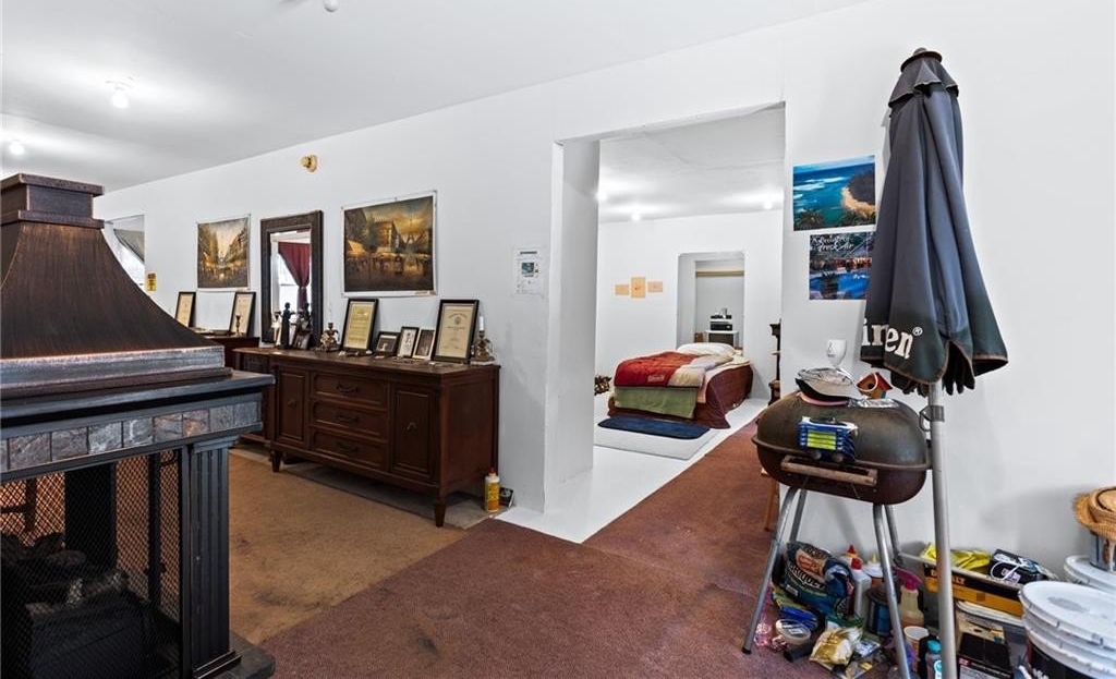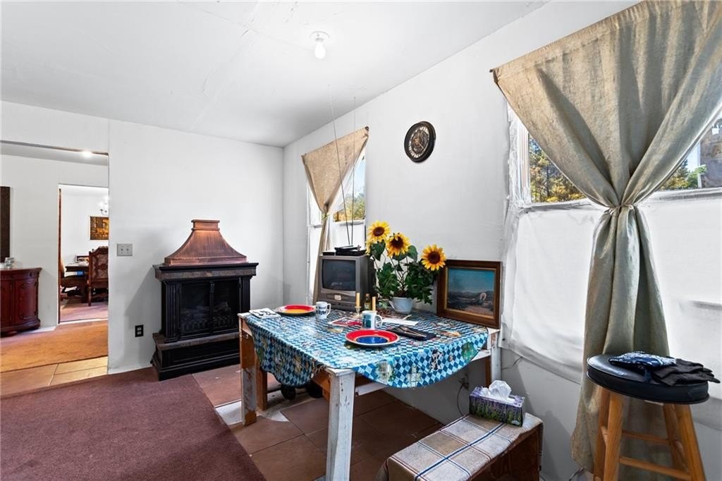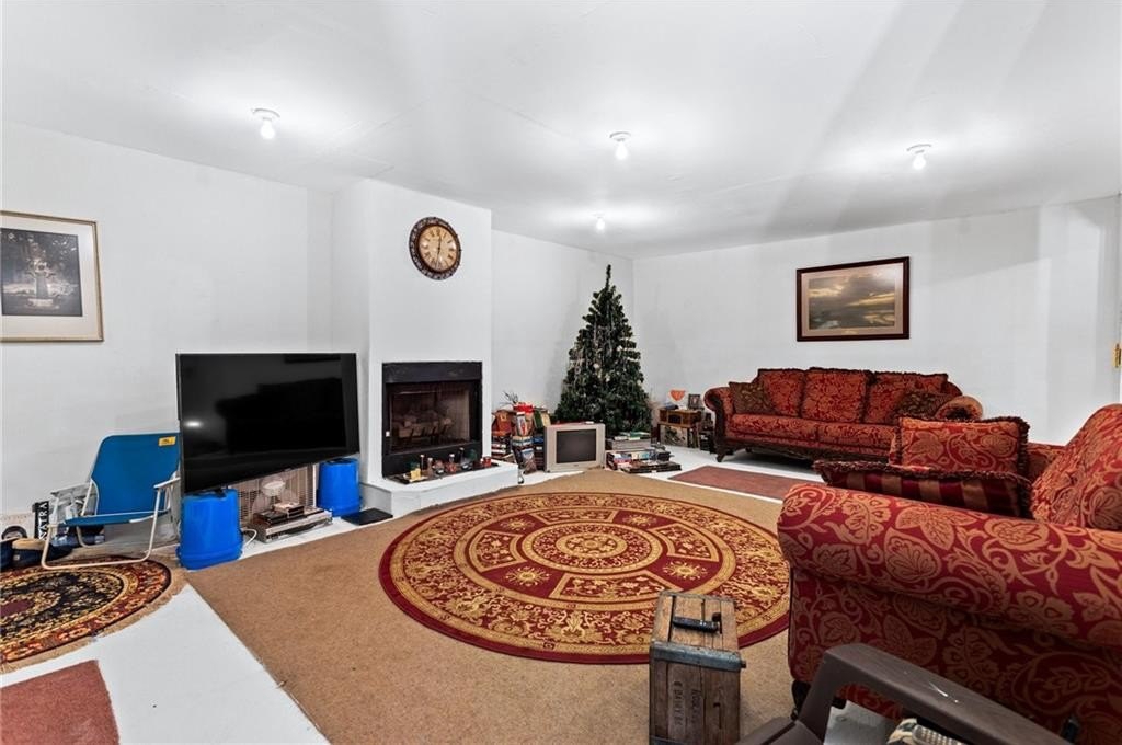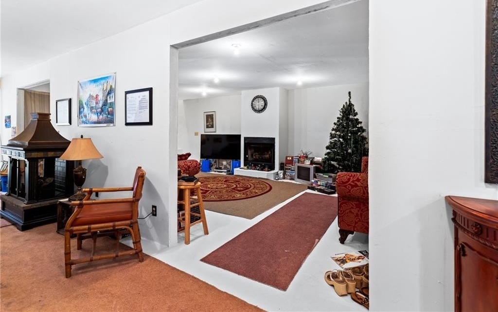 Inside, the home features an inviting kitchen with a breakfast space, plus a separate dining room perfect for hosting. A wide hallway leads into the oversized living room complete with a fireplace — a cozy focal point with plenty of room to reimagine the layout.
