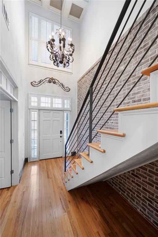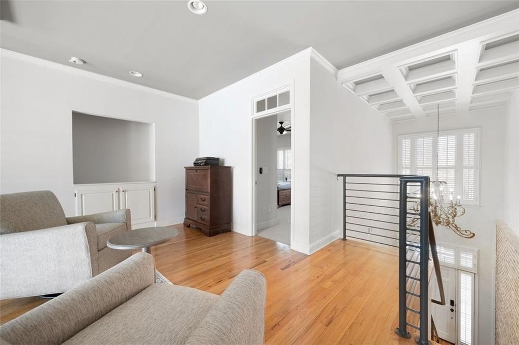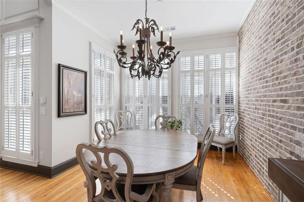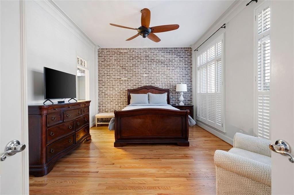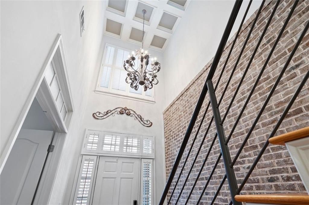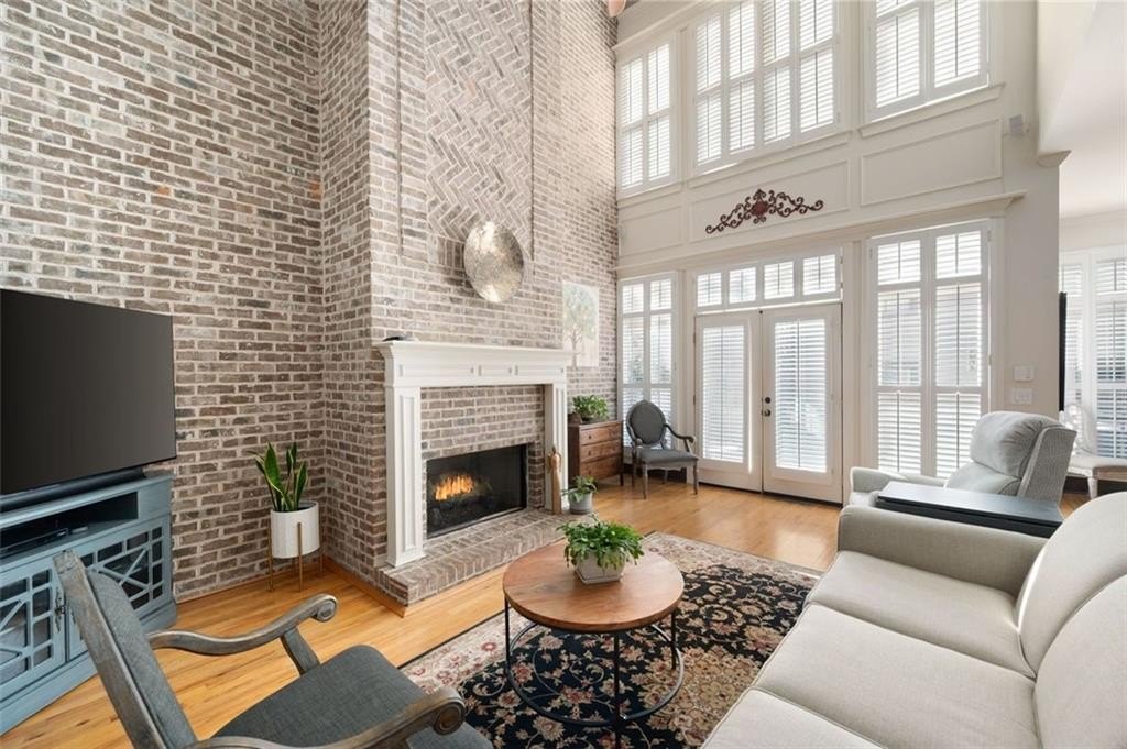 Inside, timeless Southern elegance greets you at every turn — gleaming hardwood floors, soaring ceilings, plantation shutters, and solid brick interior walls that showcase the kind of quality rarely seen today. The chef’s kitchen features rich cabinetry, beautiful finishes, and an open flow ideal for hosting. The great room is filled with natural light and eye-catching architectural details, creating a space that’s both refined and inviting.