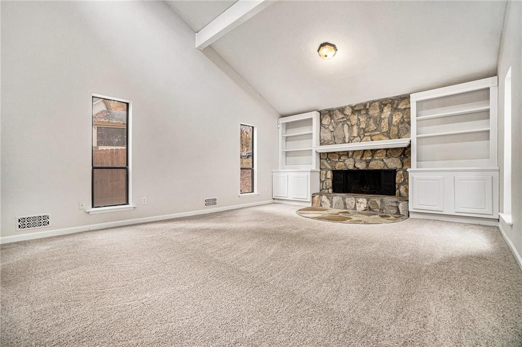 Move-in ready home in a quiet, well-kept neighborhood! This low-maintenance property features vinyl siding, freshly painted interiors, and beautiful hardwood floors throughout the main level. The open foyer leads into a vaulted living room complete with built-ins and a stunning rock fireplace. The spacious kitchen offers a breakfast bar, stainless steel stove and microwave. Just off the kitchen, the dining room opens to a back deck overlooking the large, private backyard—perfect for entertaining. The oversized primary suite also features its own private deck, offering a peaceful retreat. The primary bath includes a huge tile shower and tile flooring. Two generous secondary bedrooms share a nicely appointed hall bath with tile floors. The partially finished basement provides excellent flexibility, with a potential 4th bedroom or recreation room featuring a walk-in closet and exterior access to the driveway. This one is truly move-in ready—don’t miss it!