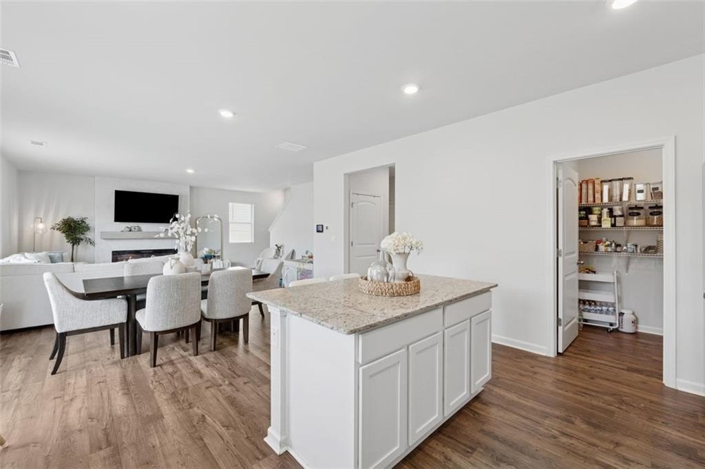 Welcome to 347 Etowah Parkway, a well-appointed 5-bedroom, 3-bath Hanover floor plan residence located in the highly desirable Etowah Preserve community in Dawsonville, GA. This home features an open-concept main level with luxury vinyl plank flooring, a spacious living area with a custom stacked-stone fireplace, and a modern kitchen equipped with granite countertops, stainless steel appliances, a large island, and a walk-in pantry. A guest bedroom and full bath on the main level offer added versatility, while upstairs you'll find a generous loft, three secondary bedrooms, and a serene primary suite with dual vanities, soaking tub, separate shower, and an oversized walk-in closet.