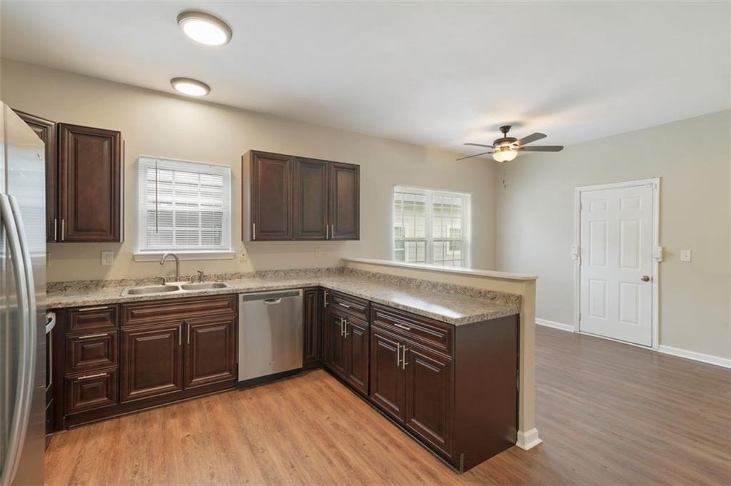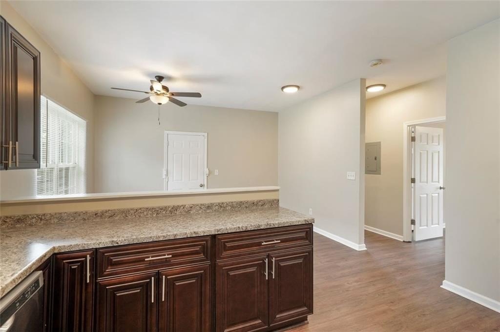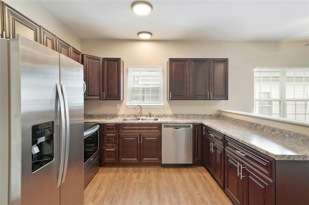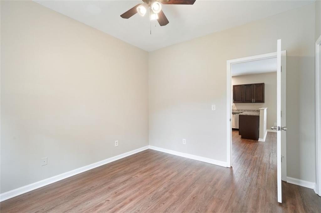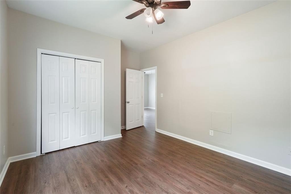 NOT A SINGLE THING TO DO in this total renovation!!! Perfect for the first-time buyer or “plug and play” investor. New interior paint, newer exterior paint. Newer LVT Flooring. Updated cabinets and countertops in spacious eat in kitchen. Stainless steel appliances and backsplash behind cooktop. Primary suite and 3 additional bedrooms – all with good closets. New vanities, new lighting, and new blinds. HVAC system is only 4 years young. Rocking chair front porch and brand new deck overlooking large, level fully fenced backyard. Conveniently located close to downtown Atlanta, the Atlanta airport, the Westside Reservoir Park, Echo Street West, and other new Westside developments. Run, don’t walk to see this one before it is GONE!