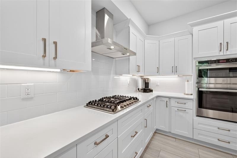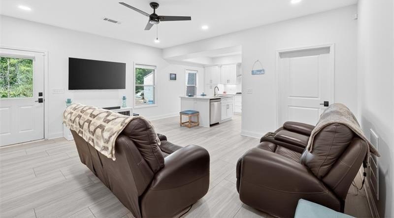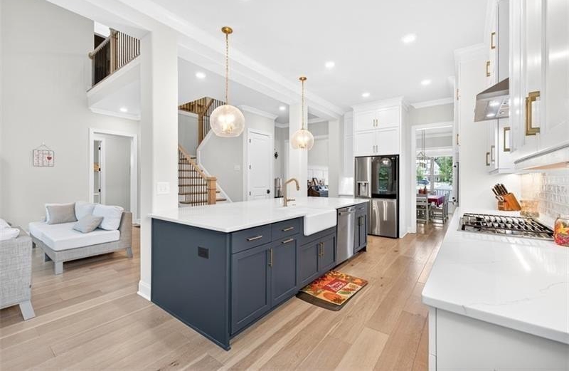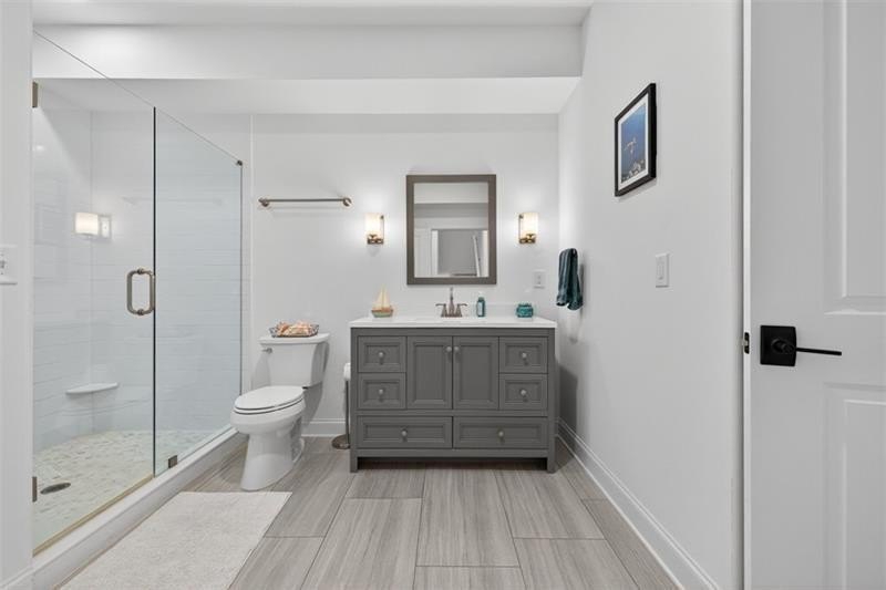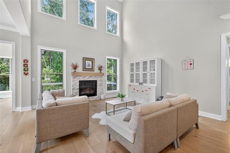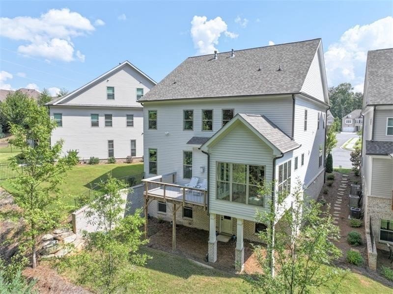 Owner financing available! Experience guard gated luxury living in the prestigious Bellmoore Park, within the award-winning Northview High School district, nestled at the end of a very large and peacefully secluded CUL-DE-SAC. Enjoy beautiful morning sunrises on the charming covered front porch in this EAST FACING home that is directly across from an open green space park equipped with additional guest parking spaces. The backyard of this premium CUL-DE-SAC BASEMENT LOT opens up to an enchanting private wooded area that leads to the tranquil Cauley Creek. Main level features a 2-story family room boasting a window wall providing an abundance of NATURAL LIGHT that illuminates the OPEN CONCEPT living space plus hardwood floors on the entire main level and upstairs hallway. Elegant kitchen with SS appliances, Luxe Gold finished hardware, oversized 10-foot quartz slab island, gorgeous premier light fixtures, white porcelain Farmhouse Sink, double ovens, and a 5-burner gas cooktop. Retreat to the cozy and bright SUNROOM that gives panoramic views of the backyard leading out onto the DECK. GUEST BEDROOM WITH FULL BATH are also included on the main level. Upstairs features EXTRA LARGE MASTER SUITE, his and hers separate expansive walk-in closets, fully tiled shower with bench, his and hers vanity, and large soaking tub. 2 additional Bedrooms with full baths are on the second floor with 1 Bedroom that comes with an EN SUITE bathroom and walk-in closet for ultimate privacy and convenience. Laundry room, with sink, is perfectly placed on the second floor for ease and practicality. With over $125,000 in upgrades your family can retreat to the Fully finished IN LAW SUITE basement is the ideal multi generational living space for your loved ones. Providing a full kitchen with island, bedroom, full bathroom, laundry room, exercise room, TV room, and plenty of storage. Deep set Garage features ample storage space with additional storage in the attic. All landscaping and lawn care are included in the HOA dues, Community amenities include clubhouse, fitness center, junior Olympic, kiddie, and splash pad pools, six tennis courts, basketball, playgrounds, open grass areas, and private sitting areas. The home is just a few miles from Johns Creek's newest and largest "Cauley Creek Park" including six pickleball courts, and very close to the new mixed-use retail, shopping, restaurants, entertainment, 43-acre Town Center "Medley" and Technology Park.