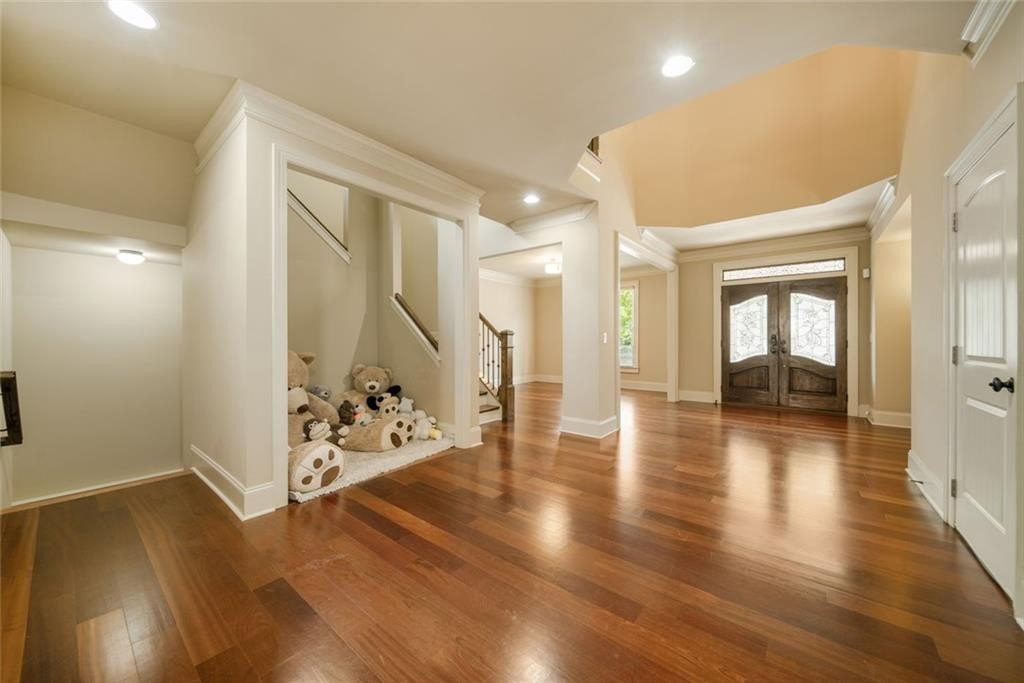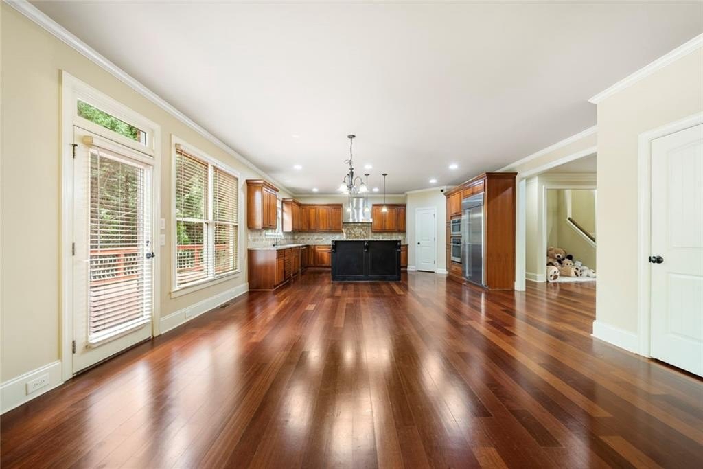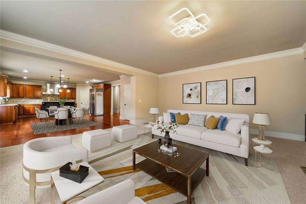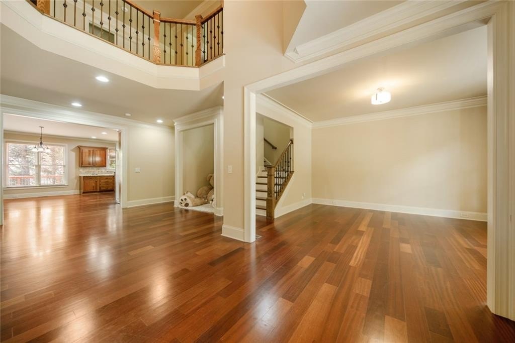 Beautiful and spacious 4-side brick home located in a gated community in the sought-after Brookwood area of Snellville. Enjoy peace of mind with guarded entry and access to top-notch amenities. Step into a grand two-story foyer and hardwood floors that flow throughout the main level, excluding the living room. The open-concept kitchen features an integrated refrigerator and overlooks the living area, perfect for entertaining. A large flex room offers endless possibilities—office, gym, playroom, or guest space. Upstairs, you'll find more hardwood flooring throughout the halls, with carpeted bedrooms for comfort. The oversized master suite includes a walk-through closet, dual vanities, a stunning standing shower, and a relaxing jetted tub. Each secondary bedroom has its own full bath and walk-in closet. The spacious laundry room adds even more convenience. Downstairs, the full unfinished basement is ready for your personal touch—create a home theater, in-law suite, or game room. Outside, enjoy a beautifully painted and oversized deck. All of this in a durable, elegant 4-side brick construction offering timeless curb appeal and low maintenance.