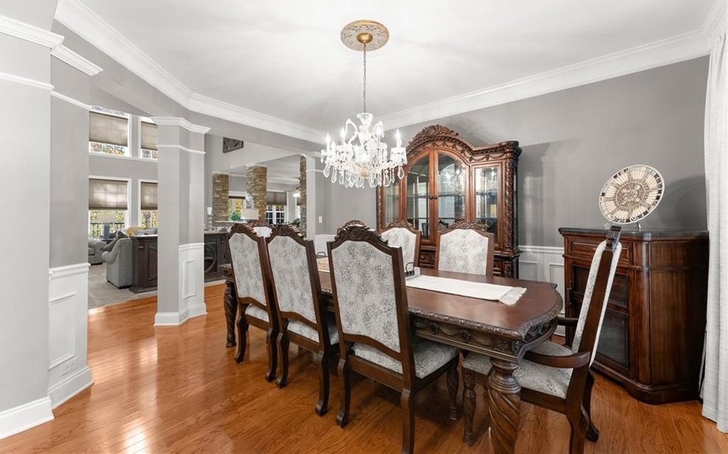Welcome Home! This warm and inviting 5-bedroom, 4-bath residence offers 6,015± square feet of beautifully designed living space on a private 1.22± acre cul-de-sac lot in the highly desirable Lake Forest community. From the moment you arrive, the fresh professional landscaping and welcoming curb appeal draw you in. Once you enter you’ll immediately notice the gleaming hardwood floors, immaculate carpets and thoughtful architectural details throughout. At the heart of the home awaits an inviting eat-in gourmet kitchen, showcasing premium stainless steel appliances, an expansive center island with breakfast seating, and generous counter space ideal for both casual cooks and seasoned chefs. Direct access from Kitchen to the beautiful screened-in porch makes it easy to enjoy morning coffee or relaxed evenings with friends and family while taking in the sounds of nature. The separate dining room is perfect for intimate family dinners or those special holiday moments offering entertaining options galore. Open views from the kitchen lead into the spacious family room, where floor-to-ceiling windows flood the space with natural light. A beautiful hearthed fireplace and custom built-ins add warmth and character, creating the perfect spot for family movie night or curling up with a good book. There's a main-floor bedroom providing a comfortable and private space for quests. Head upstairs to a charming catwalk with built-in bookshelves overlooking the main living area and the oversized Master suite. With elegant tray ceilings, a spa-like bath featuring double custom shower with soaking tub, as well as a walk-in closet that could make anyone envious, this is the perfect escape at the end of the day. 2 spacious secondary bedrooms share a Jack-and-Jill bath, and the oversized flex room offers endless possibilities — media room, playroom, or even an additional bedroom. (Seller is open to adding a closet here or in the basement bedroom if desired.) The finished basement is equally impressive, with a full wet bar and kitchenette, large living area with cozy fireplace, a home office, workout room, and guest suite making an ideal place for entertaining, relaxing, or hosting long-term visitors. At the end of the day enjoy your own outside private oasis featuring a NEW Trex deck, cozy fire pit, with wooded backdrop for added privacy. A storage shed keeps outdoor toys and tools tucked away, leaving the three-car garage open for vehicles and maybe even a workbench. The lifetime warranty roof insures low maintenace cost, and the meticulous upkeep all reflect the pride of ownership throughout. The Lake Forest community is known for its friendly atmosphere, wonderful amenities, and access to a peaceful lake — perfect for a little lake life whenever you want it. Impeccably maintained and full of charm, this home perfectly blends comfort, elegance, and functionality — a truly special place you’ll be proud to call home.
