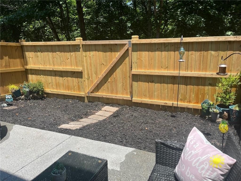Welcome to The Preserve at Woodland Creek—where convenience meets comfort in this move-in-ready townhome on a premium-view lot! This updated 3-bedroom, 2.5-bath home features recently installed hardwoods on the main level, a bright open floor plan, and a cozy fireside family room that flows seamlessly into the kitchen and dining spaces. The kitchen is outfitted with a full stainless steel appliance suite, tile backsplash, and rich wood cabinetry—perfect for everyday living or entertaining. Upstairs, the spacious primary suite offers a tray ceiling, walk-in closet, double vanity, and soaking tub. Enjoy the tranquility of your private, fenced patio that backs to peaceful hardwoods—no rear neighbors! Additional improvements include a brand new roof, updated bathroom vanities, and added storage in the garage and attic. Ideally located near award-winning schools, dining, shopping, parks, and commuter routes. This home checks all the boxes—don’t miss your chance to see it today!