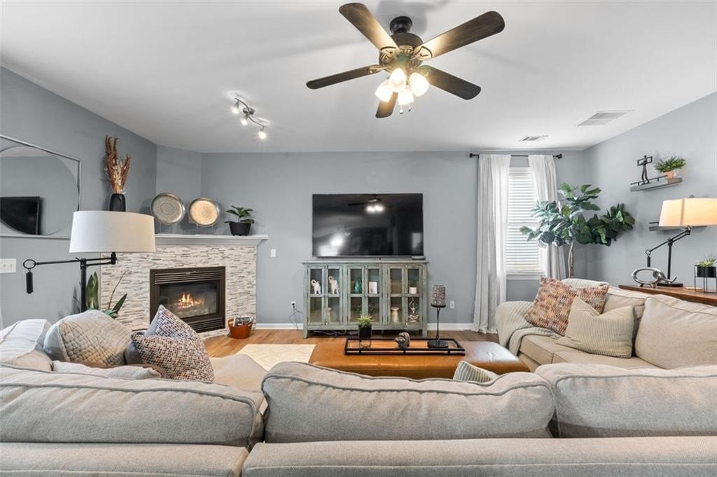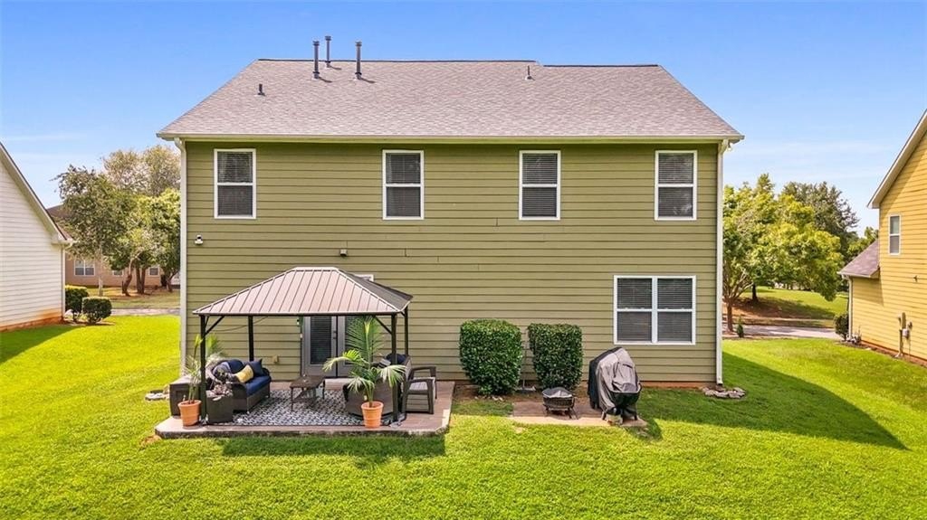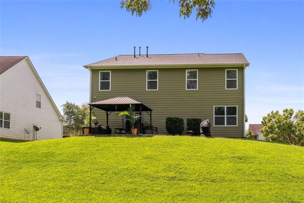 If you’ve been waiting for a home that blends space, updates, community living, and true curb appeal, this one deserves your full attention. This beautifully maintained craftsman style 4 bedroom, 2.5 bath home offers over 3,100 sq ft of thoughtful design in the serene Heron Bay golf course community, complete with a classic brick front and inviting country style porch that set the stage for the warm interior inside. High ceilings, wide arched entryways, and upgraded finishes create a welcoming flow from the formal living and dining spaces into the remodeled kitchen with stainless appliances, center island, walk in pantry, breakfast bar, and casual dining area that all open to a large family room with an upgraded stone fireplace. The main level also includes a fully remodeled powder room and a convenient mudroom laundry area. Upstairs, a spacious loft adds flexible living space, while the oversized owner’s suite impresses with a sitting area, spa inspired bath, double vanity, separate soaking tub and shower, private water closet, and a massive walk in closet with built in shelving. Three additional spacious bedrooms share an updated full bath. Outdoor living shines with a generous backyard, updated patio with wood-look tile, mounted gazebo for shaded seating, and a separate grilling area ideal for entertaining. A two-car garage, long driveway, brand-new roof under a year old, updated flooring, and new lighting round out the appeal. The HOA offers exceptional amenities including pool, tennis, walking trails, splash pad, playground, and dog park, all minutes from schools, shopping, and dining. Plus, this property is eligible for special 100 percent no MI financing with below market rates. With its space, style, upgrades, and unmatched community amenities, this home checks every box, schedule your private showing today before it’s gone.
