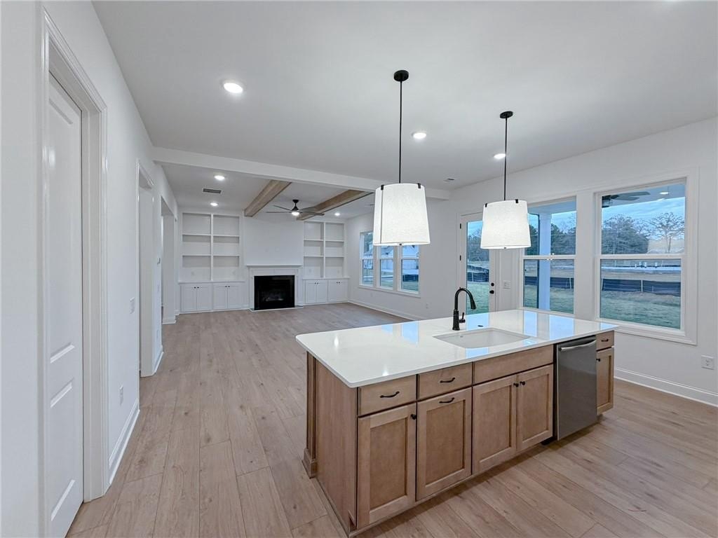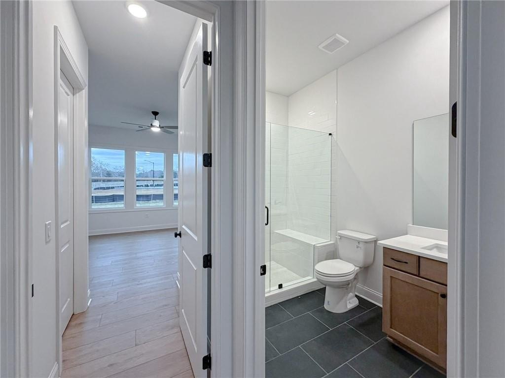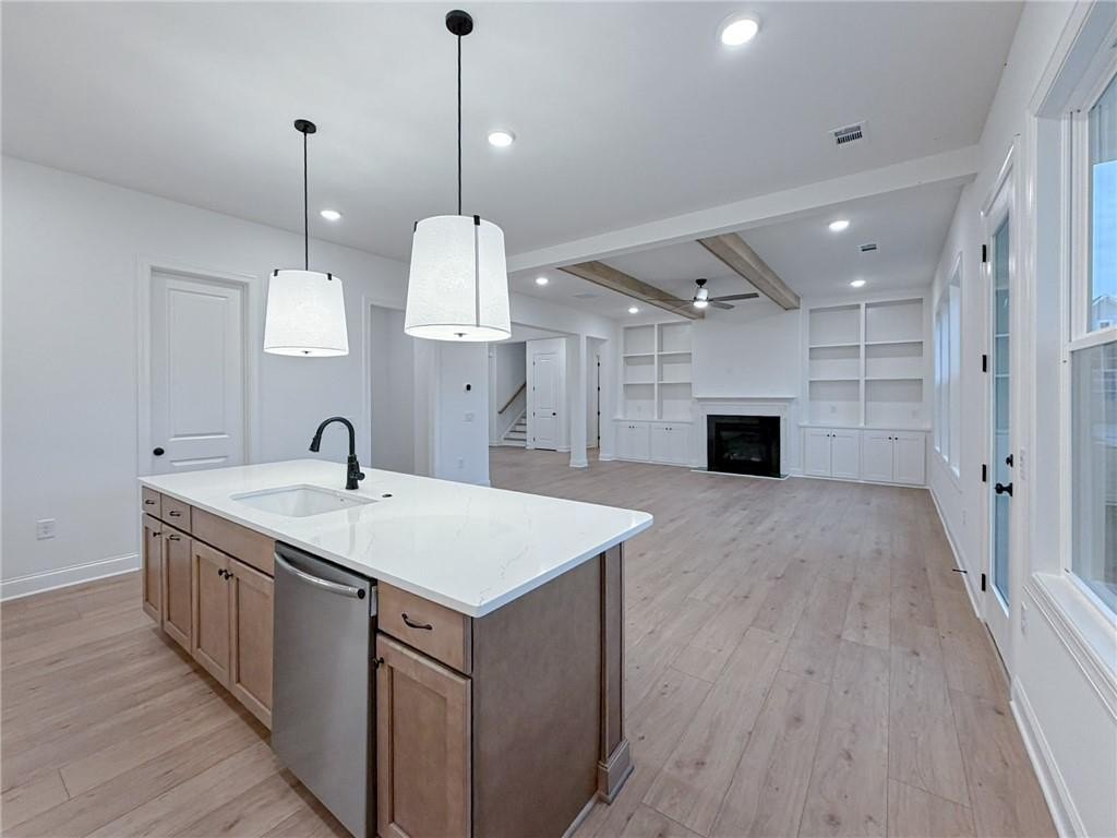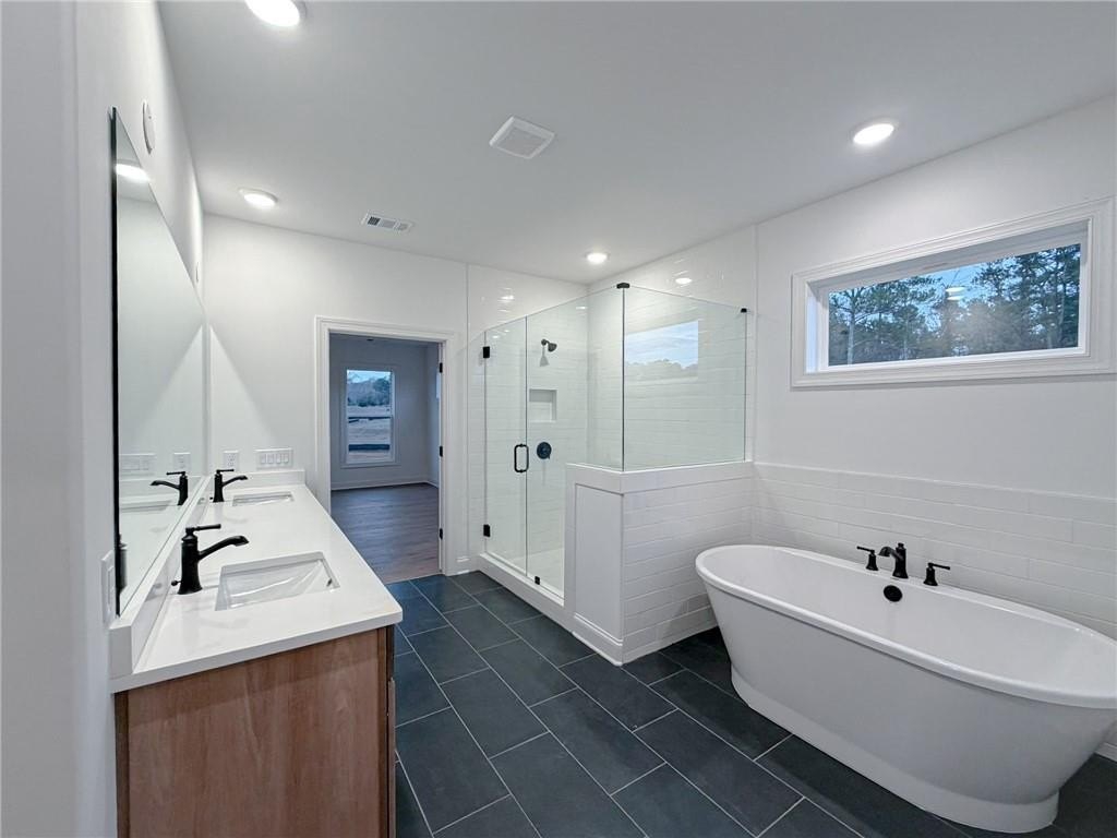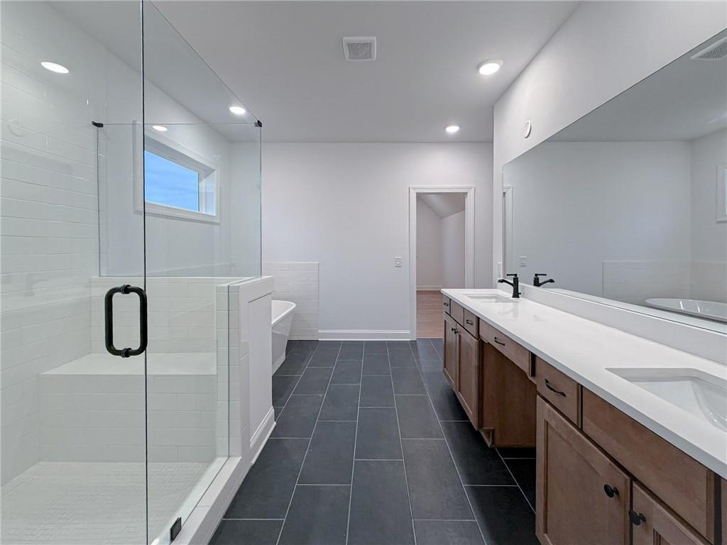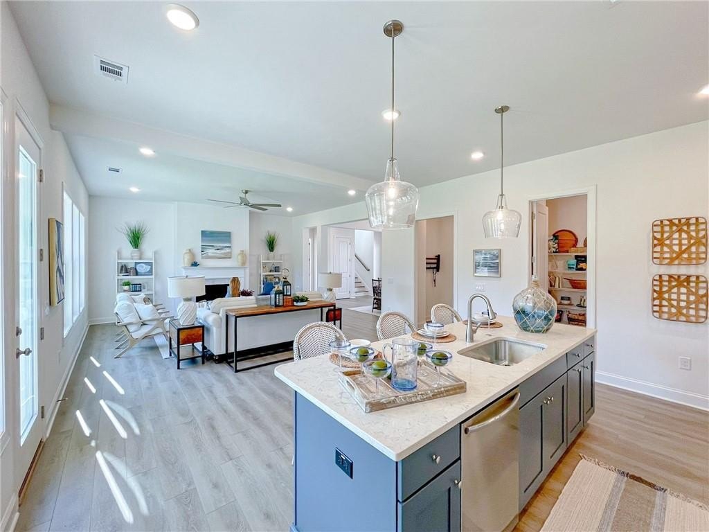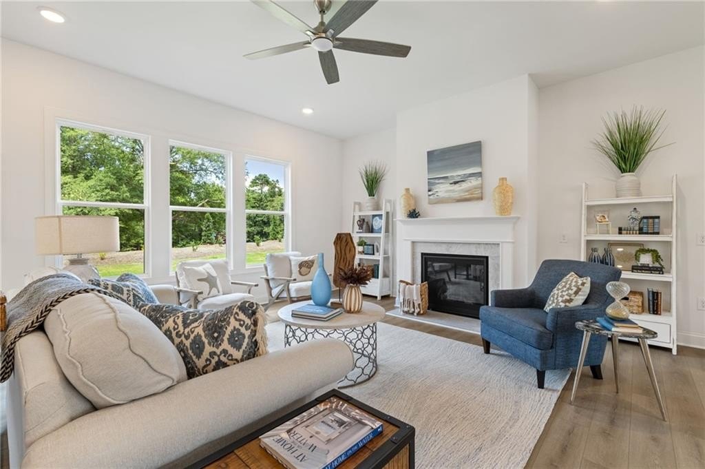 Step into a light-filled open floor plan with 10' ceilings, a gourmet kitchen with soft-close Prescott cabinetry, quartz countertops, and a walk-in pantry that opens seamlessly to the dining and great room with a designer fireplace. Upstairs, retreat to the spacious primary suite with a freestanding tub, oversized shower, and walk-in closet. Every bath is outfitted with premium tile and matte black Moen fixtures.