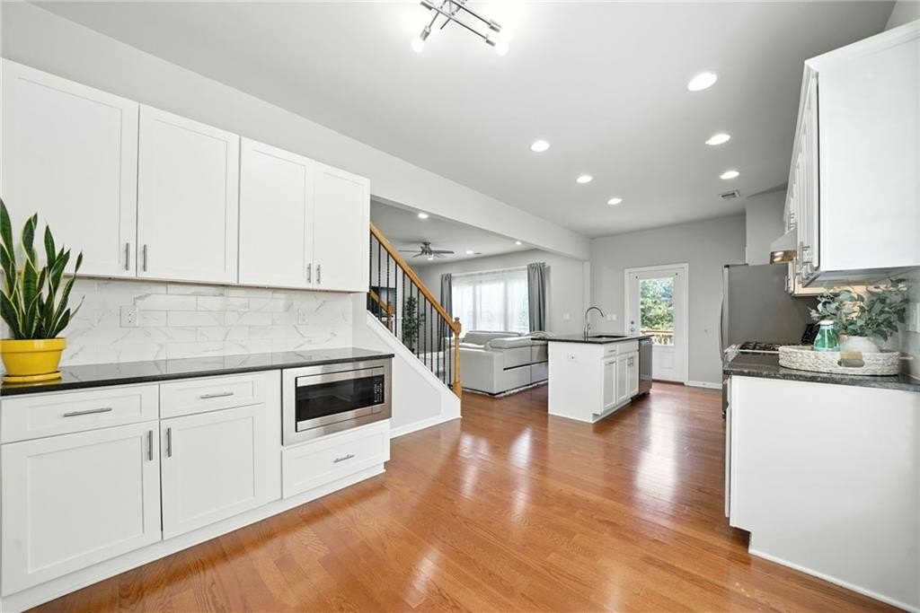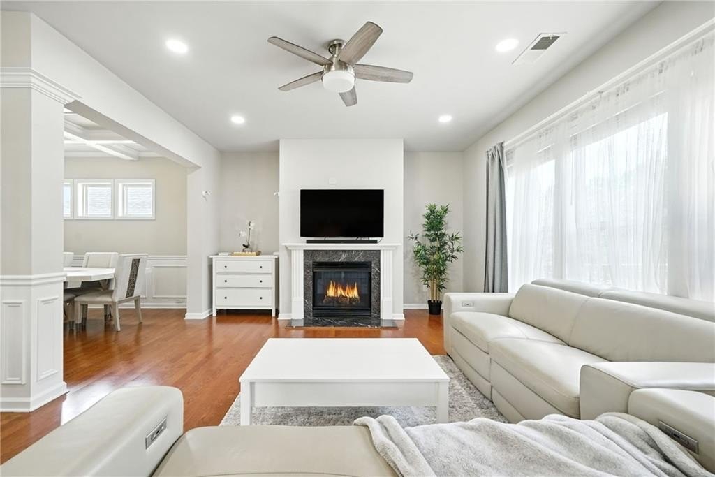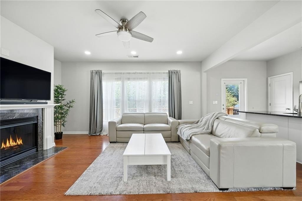 Step into a welcoming haven where smart-home convenience blends seamlessly with timeless style. This beautifully maintained residence offers an effortless indoor-outdoor flow, with the HOA taking care of both trash and landscaping each week. Inside, fresh paint brightens every room while plush new carpet on the upper level invites barefoot comfort—perfect for both everyday living and entertaining. Downstairs, a fully finished basement suite enhances the home with a versatile media space, its own bedroom, full bath, and kitchenette—a private retreat ideal for extended family, work-from-home, or guests seeking both comfort and independence. Modern touches abound, from only three-year-old appliances in the kitchen to an integrated smart-home ecosystem—smart switches, thermostat, and Ring security cameras work together to provide seamless control and peace of mind. Step outside into a fenced backyard retreat, where a covered patio sets the stage for relaxing evenings or weekend gatherings, while a vegetable garden offers a slice of homegrown joy right at your doorstep. Just moments away, Town Center Park invites you to enjoy open green spaces, a lively amphitheater with seasonal events, and a playful interactive fountain. For nature lovers, the Suwanee Creek Greenway offers miles of wooded trails for walking, biking, and wildlife spotting. Nearby, George Pierce Park features acres of recreation with sports fields, playgrounds, scenic trails, and a peaceful fishing pond.