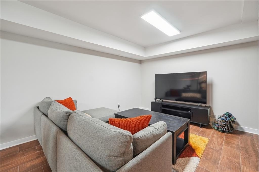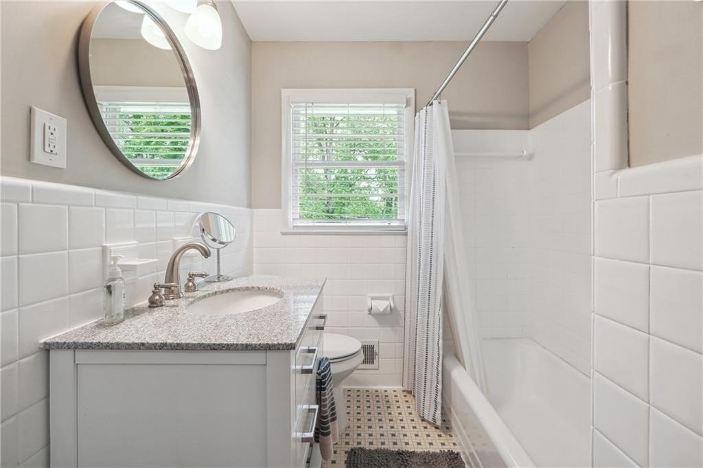 All Brick Ranch with Finished Basement! Discover your dream home in this meticulously renovated 3-bedroom, 3-bathroom brick ranch nestled on a spacious lot. With its beautiful curb appeal and inviting front porch, this home offers a perfect blend of modern comfort and classic charm. Inside, hardwood floors, new windows, and a neutral color palette create a warm and inviting atmosphere. The open floor plan is ideal for entertaining, with a stunning kitchen featuring subway tile backsplash, granite countertops, white cabinetry, stainless steel appliances, and counter seating. Step outside onto the back deck for peaceful outdoor living. Each bedroom is spacious and airy, providing a serene retreat. The bathrooms boast impressive tile work, new vanities, and updated fixtures. Downstairs, a fully finished basement offers a versatile media area, bedroom, and full bathroom, making it perfect for guests or as a home office. An additional storage room provides ample space for your belongings. Enjoy the outdoors in your fully fenced backyard, complete with a patio and firepit for summer gatherings. The home's convenient location offers easy access to retail, grocery stores, East Lake Golf Club, parks, schools, trails, and major highways.