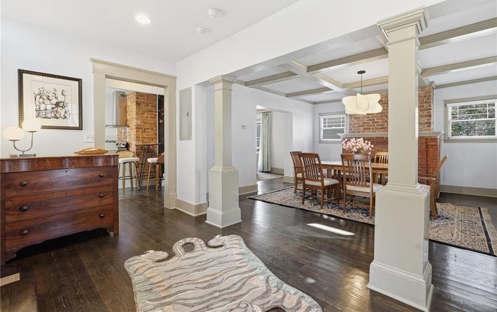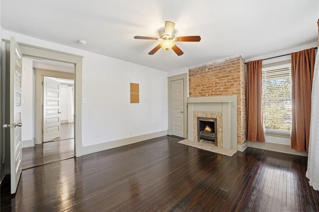 Step inside and feel history whisper through the original hardwood floors and exposed brick accents. Sunlight filters through tall windows, dancing across coffered ceilings and intricate trims. Each of the four fireplaces (yes, four) tells its own story, from cozy evenings in the living room to lively dinner parties in the dining room.