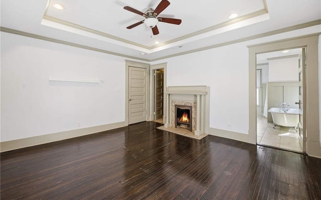 The kitchen is a dream for both cooks and collectors of charm, with its stained glass accent, abundant natural light, and all appliances staying put. Upstairs, a craftsman-style staircase with a graceful landing leads you to the sleeping quarters, where character continues to shine with more fireplaces, a shared secondary bath, and a Primary Suite that feels like a private retreat. Enjoy the clawfoot tub, separate shower, double vanity, and an oversized walk-in closet with convenient laundry access.