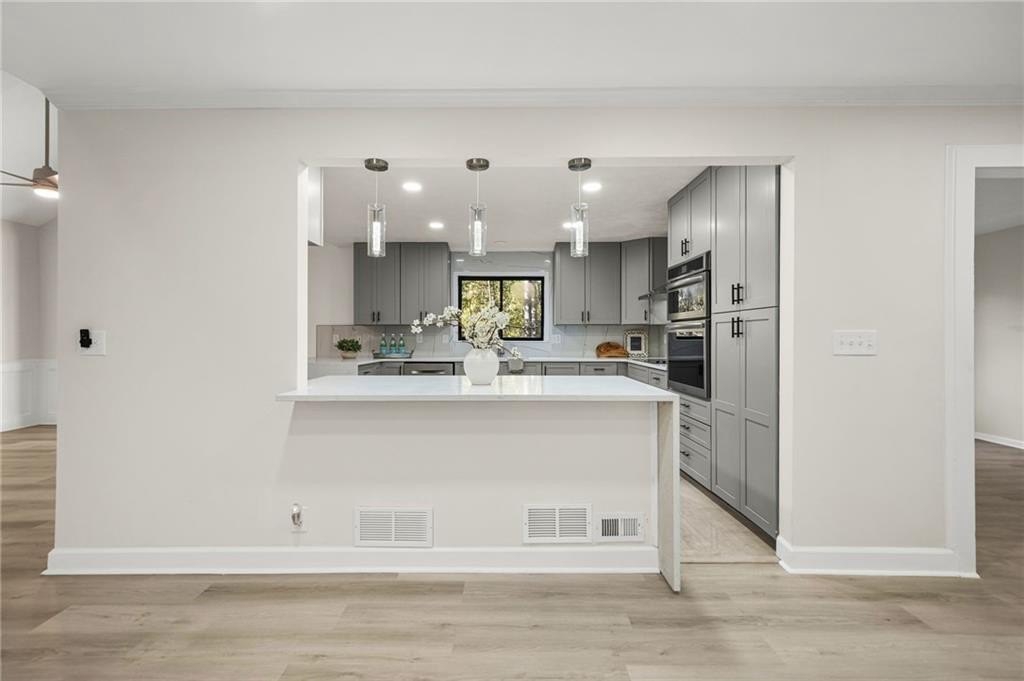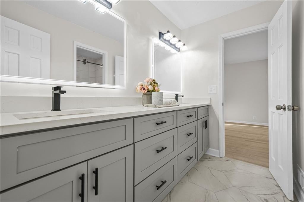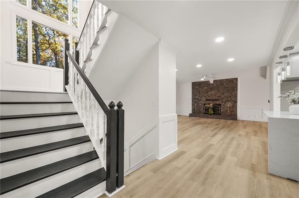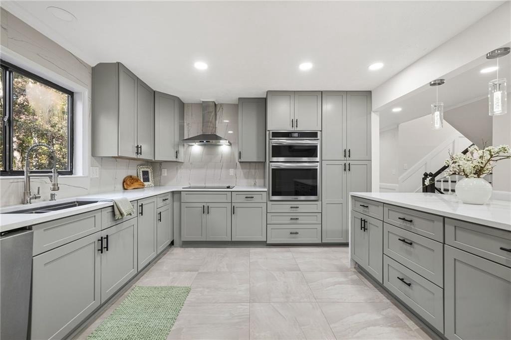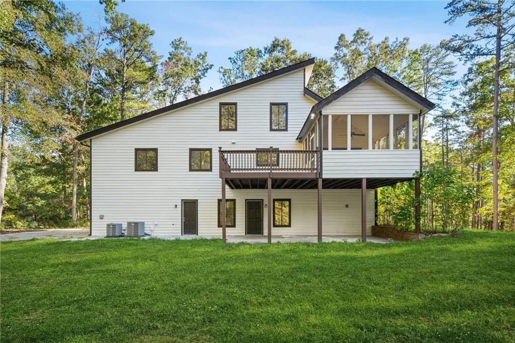 Introducing a truly exceptional residence where modern sophistication meets private serenity. This fully renovated 5-bedroom, 3.5-bath home spans 3,456 sq ft and sits gracefully on 1.7 acres of flat, secluded land surrounded by mature trees. This property blends modern elegance with peaceful privacy — truly a rare find in Snellville. Inside, you’ll be greeted by a bright, open floor plan featuring brand-new flooring, designer lighting, and a completely renovated kitchen with quartz counters, stainless steel appliances, and custom cabinetry. The main level great room with vaulted ceilings, flows seamlessly into the kitchen and dining areas plus walk outside onto a sun-filled sundeck leading to oversized deck all overlooking the vast flat backyard oasis, creating the perfect environment for both entertaining and everyday living. 2 additional bedrooms on the main level plus an office. Walk upstairs to a large Primary suite with an oversized walk-in closet, stunning remodeled bathroom with large glass shower and separate soaking tub. Downstairs, the finished basement offers 2 additional bedrooms and a separate living area — ideal for guests or in-laws. A three-car garage and extended driveway with elegant turnaround allow for ease and ample guest parking. Located just minutes from major highway, shopping, dining, parks, and top rated schools.
