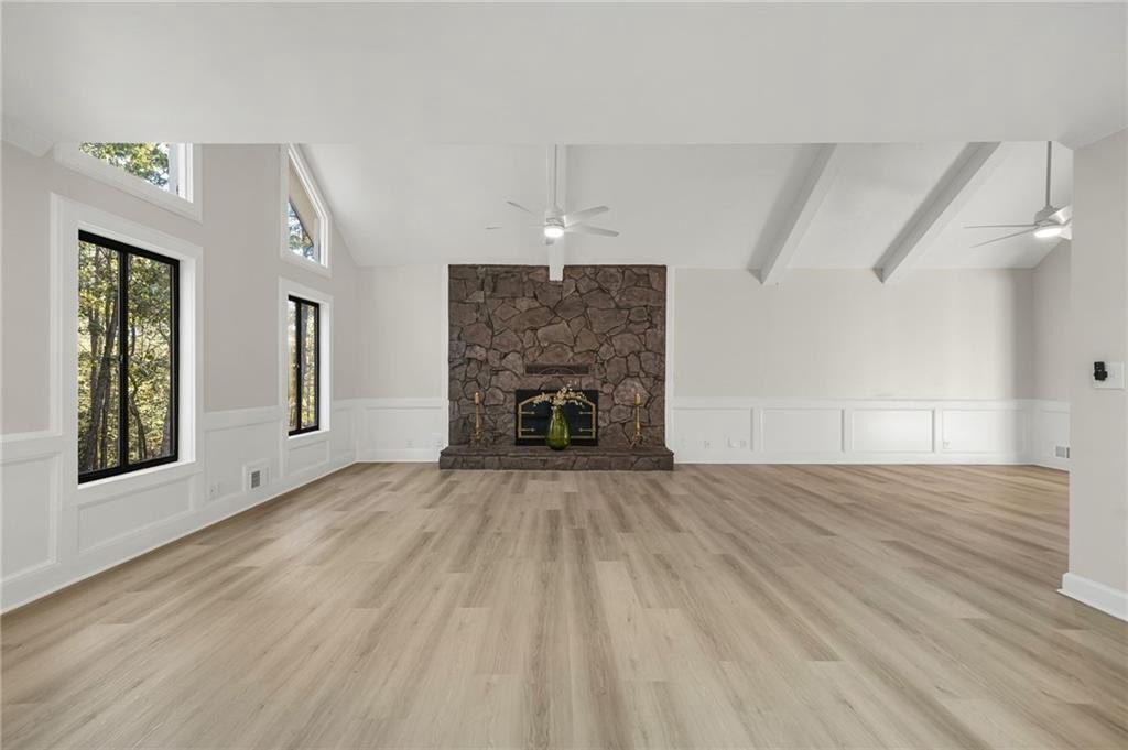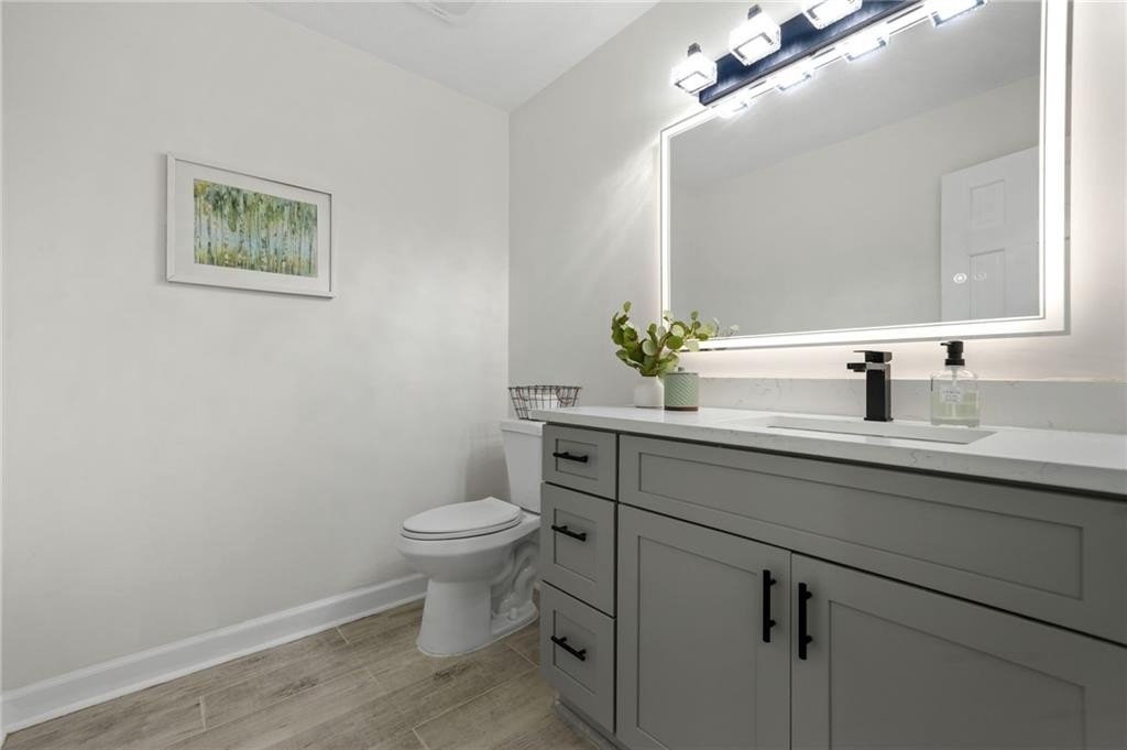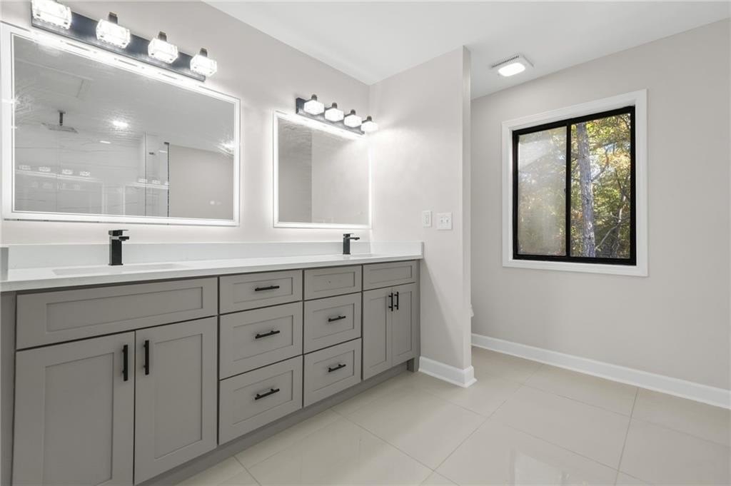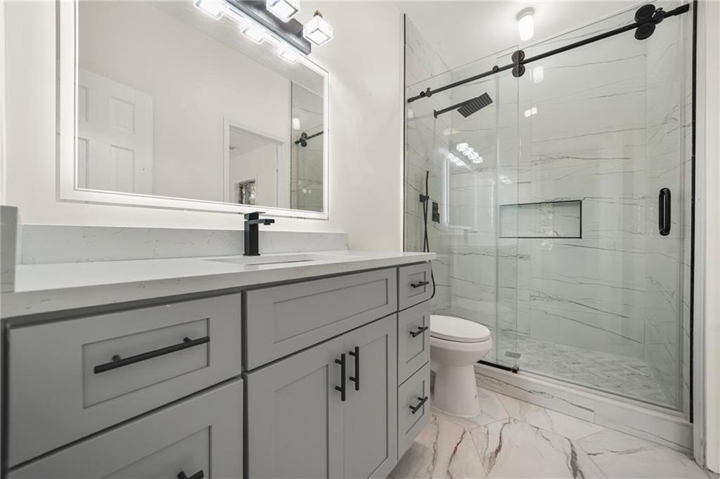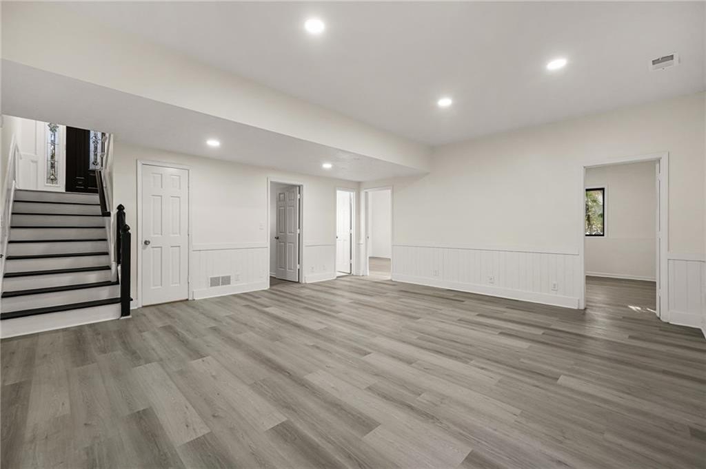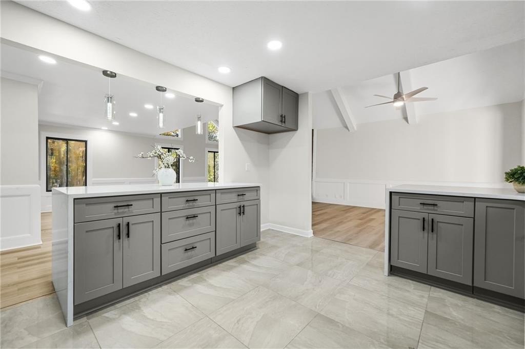 Introducing a truly exceptional residence where modern sophistication meets private serenity. This fully renovated 5-bedroom, 3.5-bath home spans 3,456 sq ft and sits gracefully on 1.7 acres of flat, secluded land surrounded by mature trees. This property blends modern elegance with peaceful privacy — truly a rare find in Snellville. Inside, you’ll be greeted by a bright, open floor plan featuring brand-new flooring, designer lighting, and a completely renovated kitchen with quartz counters, stainless steel appliances, and custom cabinetry. The main level great room with vaulted ceilings, flows seamlessly into the kitchen and dining areas plus walk outside onto a sun-filled sundeck leading to oversized deck all overlooking the vast flat backyard oasis, creating the perfect environment for both entertaining and everyday living. 2 additional bedrooms on the main level plus an office. Walk upstairs to a large Primary suite with an oversized walk-in closet, stunning remodeled bathroom with large glass shower and separate soaking tub. Downstairs, the finished basement offers 2 additional bedrooms and a separate living area — ideal for guests or in-laws. A three-car garage and extended driveway with elegant turnaround allow for ease and ample guest parking. Located just minutes from major highway, shopping, dining, parks, and top rated schools.