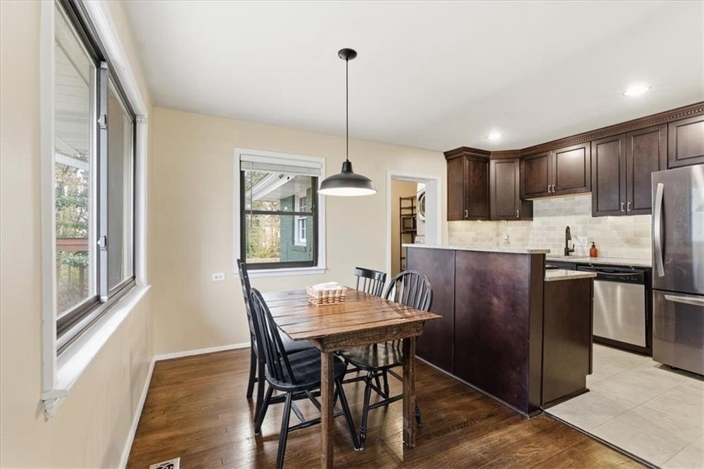 Outdoor living shines with a welcoming wood picket fence, mature landscaping, and a classic all season front porch. All of this easy access, highly sought-after neighborhood just minutes from Smyrna Market Village, The Battery/Truist Park, shopping, restaurants, parks, and convenient access to I-285 and I-75.