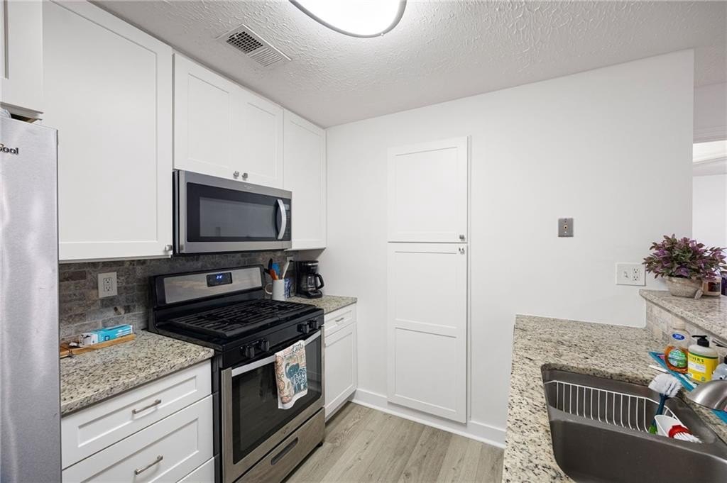 walk-ins, there is also a laundry room with ample space. The kitchen has everything you need as the gas stove, microwave, dishwasher, and