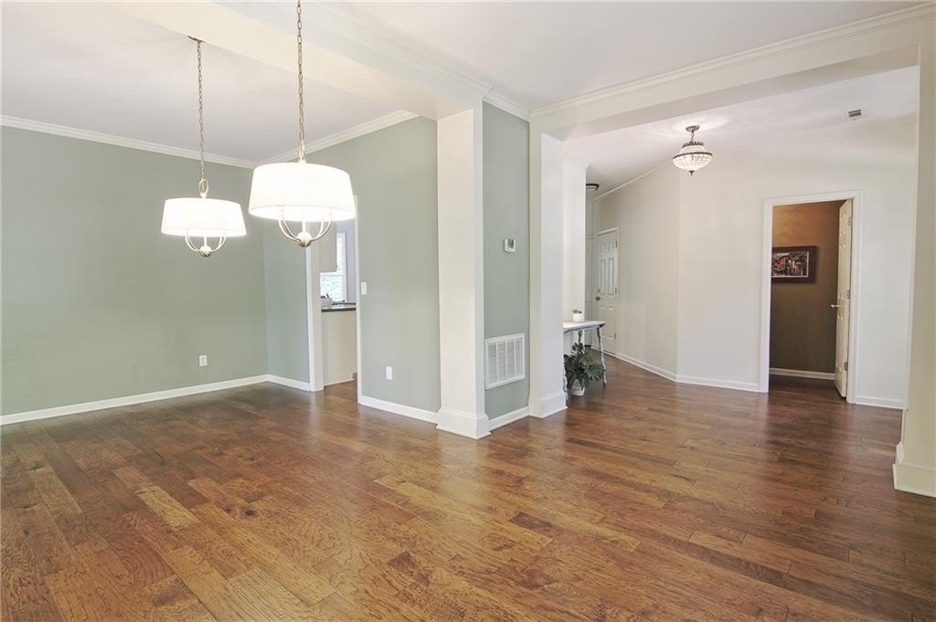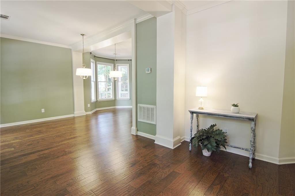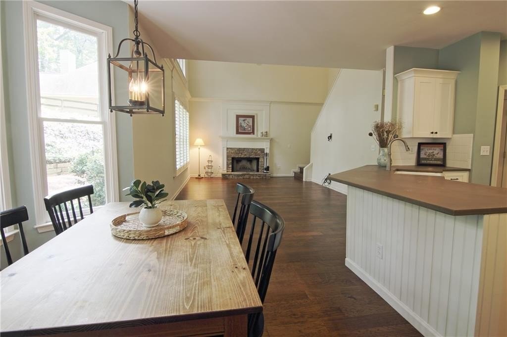 Beautiful 4-bed, 2.5-bath home with fresh updates throughout. Bright open floor plan features rich hardwood floors on main & upstairs hall, white kitchen with high-end stainless gas range, and a dramatic two-story family room with stacked-stone fireplace and wall of windows with plantation shutters. Formal living and dining areas have been thoughtfully combined into one generous dining space (easily convertible back if desired).
