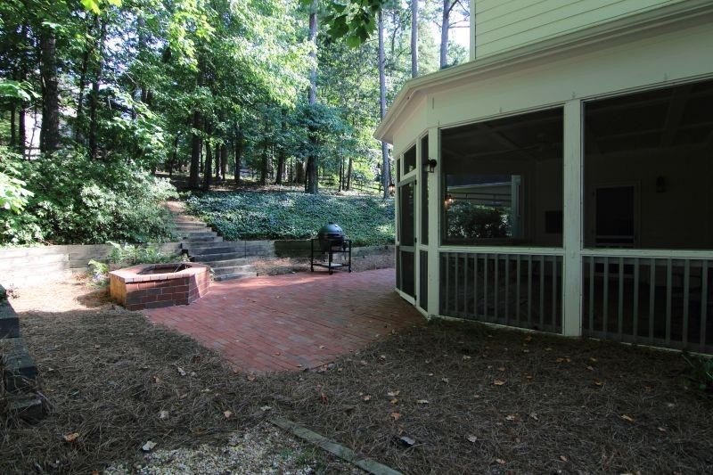 Spacious owner’s suite offers trey ceiling, built-ins, soaking tub, separate shower & huge walk-in closet. Three additional bedrooms, brand-new carpet, and a freshly remodeled full bath. Enjoy the screened porch, brick patio with fire pit, and private fenced backyard with wooded views. Side-entry 2-car garage with built-in storage.
