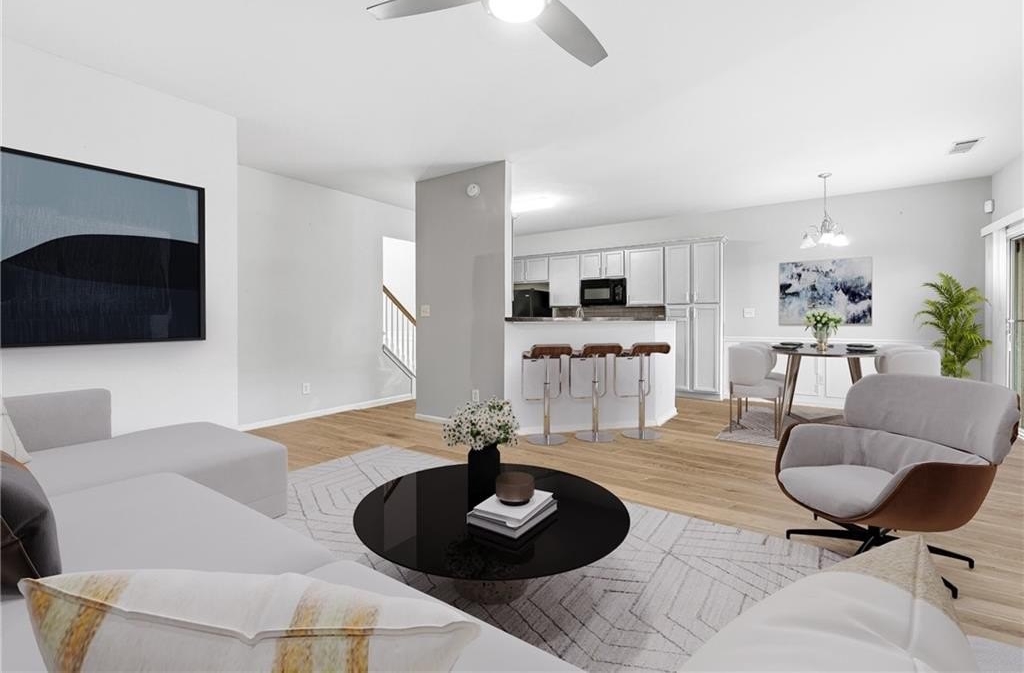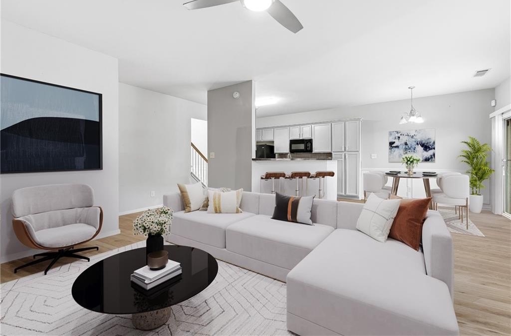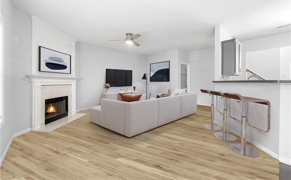 Coveted end-unit townhome with rare two-car garage in highly sought-after Suwanee area is now available! Seller is offering a $12,000 Buyer Incentive - use it any way you want. Add new LVP flooring and fresh paint, upgrade the countertops, renovate the primary bathroom - the choice is yours! Make this beautiful home truly your own. Located walking distance to the elementary school and just 2.1 miles from Suwanee Town Center where you can take advantage of shopping, dining, festivals, concerts, green space, and miles of scenic park trails. The charming front porch welcomes you into the light-filled two-story foyer. The warm fireside family room opens into the kitchen featuring a breakfast bar and dining area. Upstairs, the primary suite impresses with a vaulted ceiling, large walk-in closet, and an en suite bathroom complete with double vanity, separate shower, and relaxing soaking tub. Two additional generously sized bedrooms and full bathroom provide plenty of flexibility for family, guests, or home office. Outside you'll find a patio and wooded property line that offers privacy.