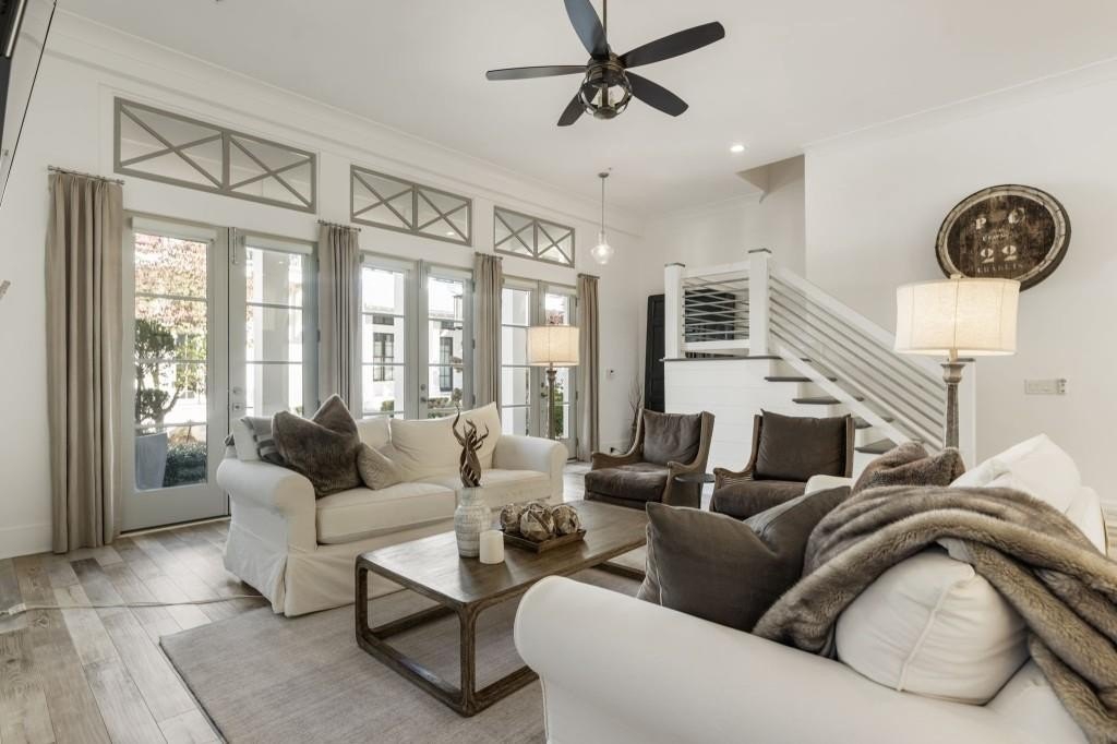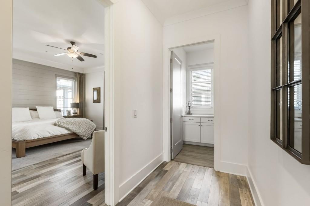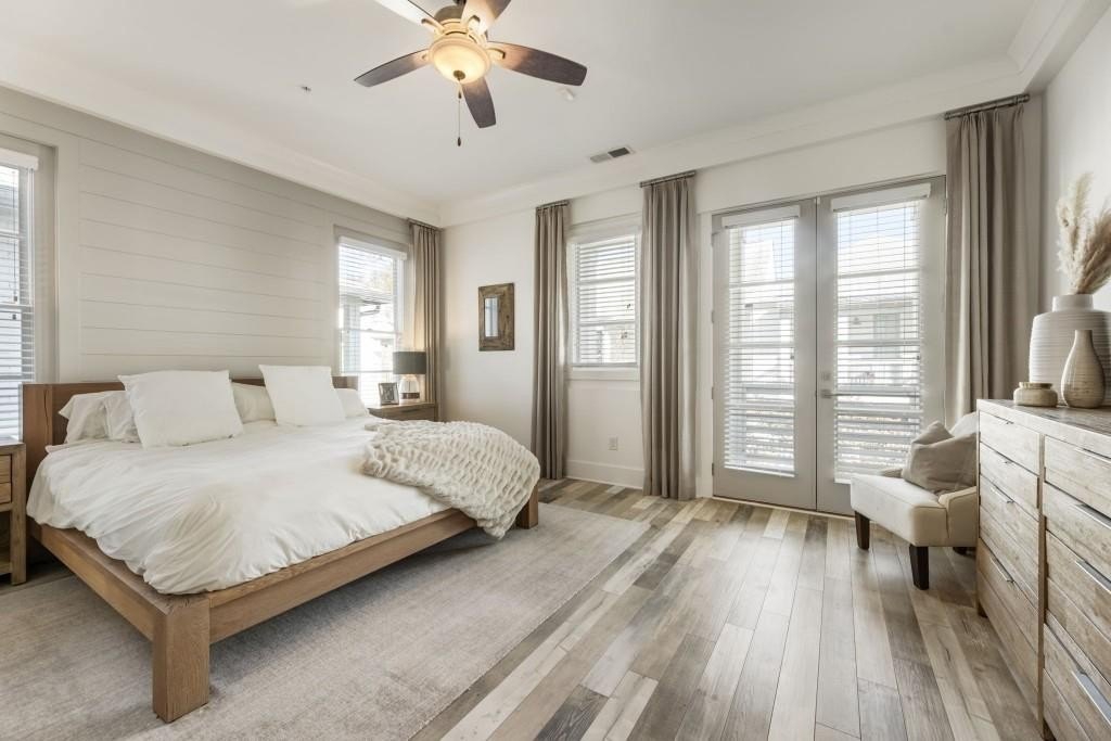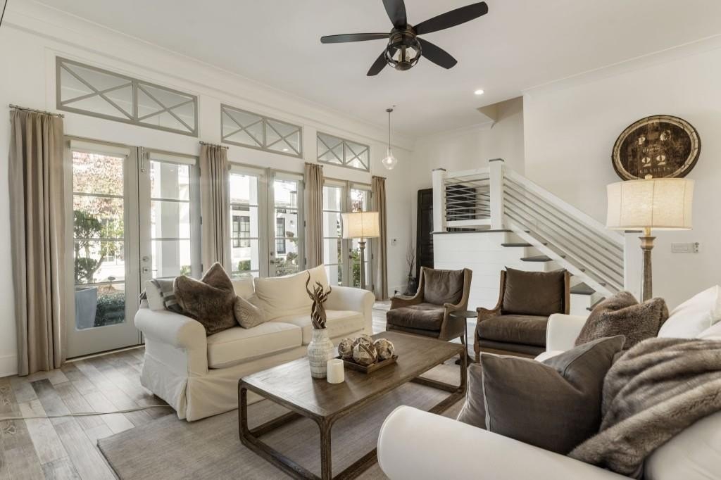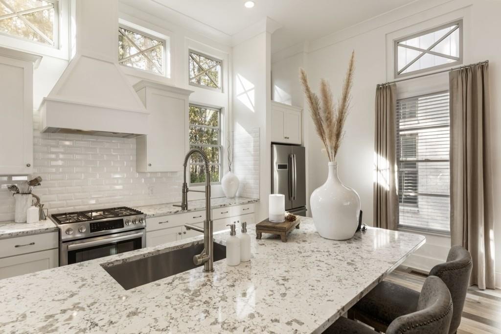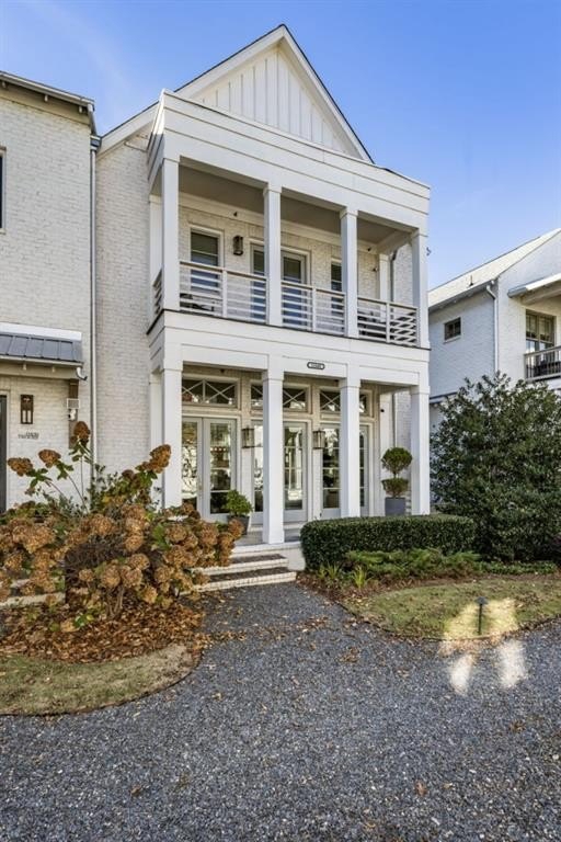 This beautiful home welcomes you with natural light pouring in from every window and 12 ft soaring ceilings on the main level that invite you into the space. The exterior offers a classic brick architectural style and sets the tone for this home that offers so much warmth and character inside. Enjoy the front porch which is the perfect place for a cup of coffee or cocktail overlooking the courtyard area. Off the front porch the three sets of French doors lead into the expansive living room centered around a gorgeous fireplace. Enjoy the open view to the eat in area and gourmet kitchen. The floors are a beautiful blend offering a coastal inspiration and the upgraded lighting and design elements make this the perfect space. The kitchen features an oversized island with quartz counters, stainless steel gourmet appliances and farm sink that all opens to the living space - such easy living and ideal for entertaining. The lower level offers flexibility for a bedroom, full bathroom and lots of closets with ample storage space. The two car garage has extra storage space and a closet as well. Upstairs the hallway is spacious with high ceilings and light pouring in from the bedrooms. The secondary bedroom has an en suite bathroom but could also be used as a private office. The primary bedroom is the perfect size with a beautifully upgraded bathroom including the freestanding tub, shower and dual vanities. Walk into your customized closet with built-in storage space including custom drawers, closets and storage. The home is also elevator ready, offering the option to install one if desired, or enjoy the space as generous additional storage. Just minutes to Avalon, GA 400 and downtown Alpharetta this really is the perfect location that blends convenience and luxury living with modern comfort and some Southern charm.