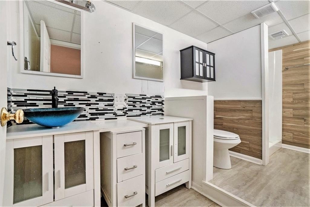 Welcome home to this charming, move-in ready property offering space, comfort, and modern updates throughout. Originally built in 1989, the home had been previously refreshed with updated kitchen finishes, renovated bathrooms, and updated fixtures, creating a clean, current feel while still maintaining its classic character. Beautiful hardwood floors flow through most of the home, with durable luxury vinyl flooring in the kitchen for easy maintenance. The spacious family room features a cozy brick fireplace, perfect for relaxing evenings, and a separate dining room provides a great space for family meals or entertaining. The finished basement offers flexible living space, complete with a closet and a full bathroom - ideal for a fourth bedroom, home office, or recreation room to suit your needs. Situated on a huge lot just under an acre, there's plenty of outdoor space for play, gardening, or future possibilities. Conveniently located with easy access to shopping, dining, schools, and major routes, this home offers comfort, space, and convenience - a great opportunity for homeowners ready to make it their own.