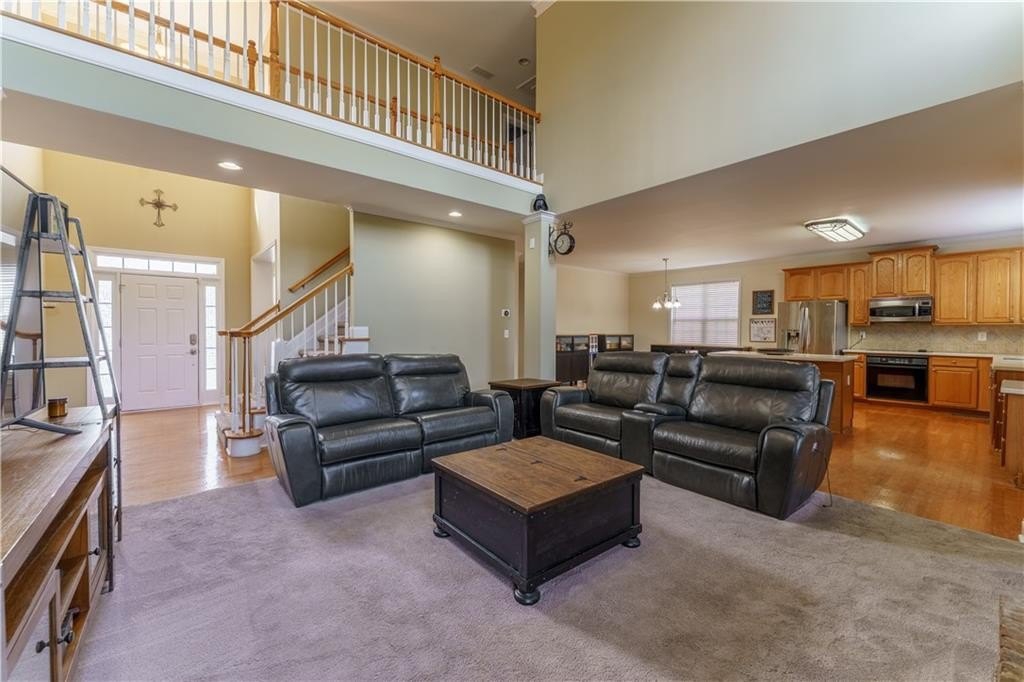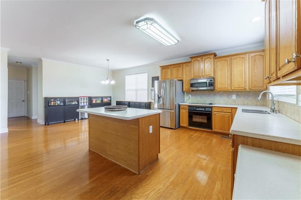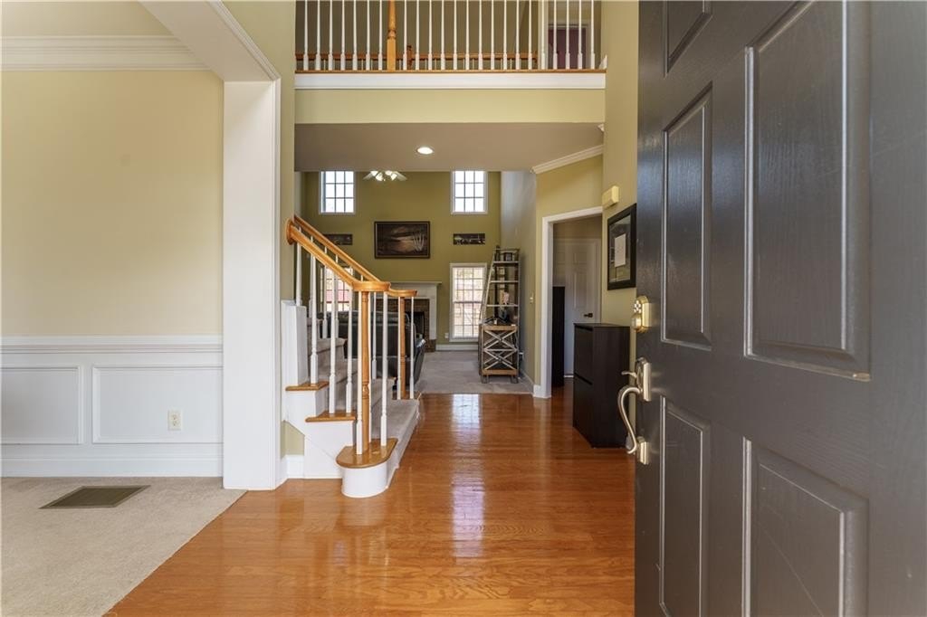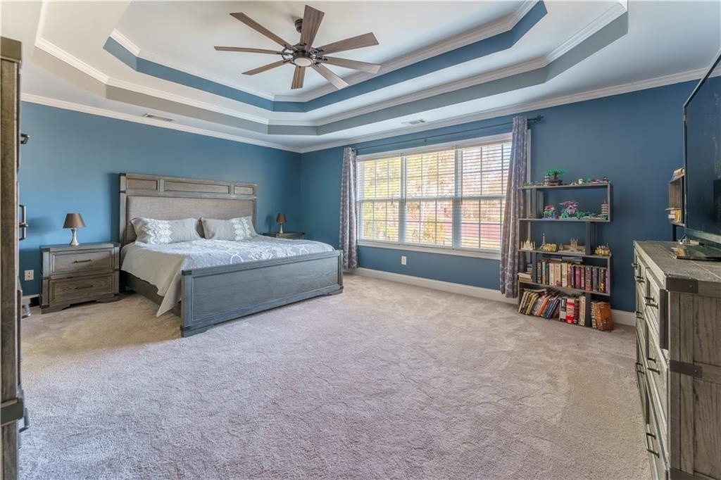 Welcome to this spacious and beautifully updated home offering 5 bedrooms and 4 full baths, including a convenient guest suite on the main level. Right away, you’ll appreciate the many recent improvements: fresh exterior paint, an extended back deck with a covered portion, new roof, new furnace, bathroom renovations, and A/C units that are only 7 years old. Step inside to a stunning two-story foyer and a two-story family room, creating an open and airy atmosphere perfect for everyday living and entertaining. The main level includes an office with French doors, hardwood floors in the foyer and kitchen, and a bright, upgraded kitchen featuring abundant cabinetry, solid-surface counters, a new dishwasher, renovated pantry, and a center island. Upstairs, the oversized primary suite impresses with a tray ceiling, a massive walk-in closet featuring a laundry chute, and a luxury spa-style bath with a vaulted ceiling, jetted tub, double vanity, and a beautifully updated shower. The additional bedrooms are generously sized, one with an en-suite full bath, and a Jack and Jill, which allows each bedroom direct access to a full bath. The unfinished, bath-stubbed basement offers a rare opportunity to customize—whether you envision a media room, gym, in-law suite, or something entirely your own. Set on a .46-acre level lot, the outdoor space truly shines with the new privacy fence, refreshed landscaping, and newly extended deck with a covered section—creating the perfect backyard oasis. Located in a sought-after active swim/tennis community, this home delivers the perfect blend of space, style, updates, and amenities!