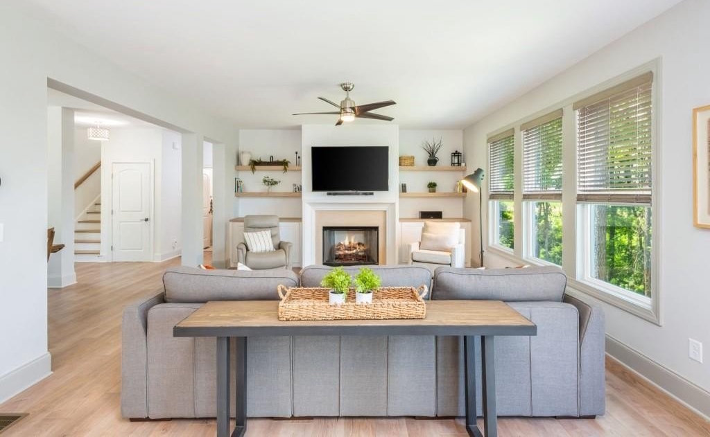 Experience modern design and exceptional privacy in this stunning 2024-built home on a private 1.7-acre lot in Liberty Springs! Thoughtfully designed for today's lifestyle, this 5-bedroom, 3-bathroom residence stands apart from nearby new construction with its spacious setting and refined finishes. The open-concept main level is filled with natural light and features a gourmet kitchen with a large island, a custom beverage bar, and sleek cabinetry that flows seamlessly into a fireside living room with floating shelves and designer lighting. Upstairs offers a luxurious primary suite with a spa-like bath, versatile flex space, and generous secondary bedrooms. The unfinished terrace level is ideal for storage or can easily be finished for added living space, while the expansive backyard is ready to be customized, perfect for outdoor entertaining or even a future pool. Conveniently located near Downtown Woodstock, Crabapple, and Hickory Flat, this home blends modern sophistication, comfort, and privacy on one of the largest lots in the community, and is just minutes from Woodmont Golf & Country Club, Brookfield Country Club, Bradshaw Farms, and Canton Golf Club. Welcome Home!