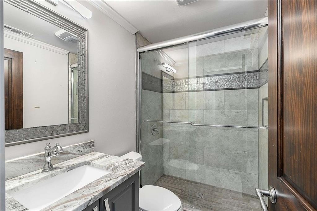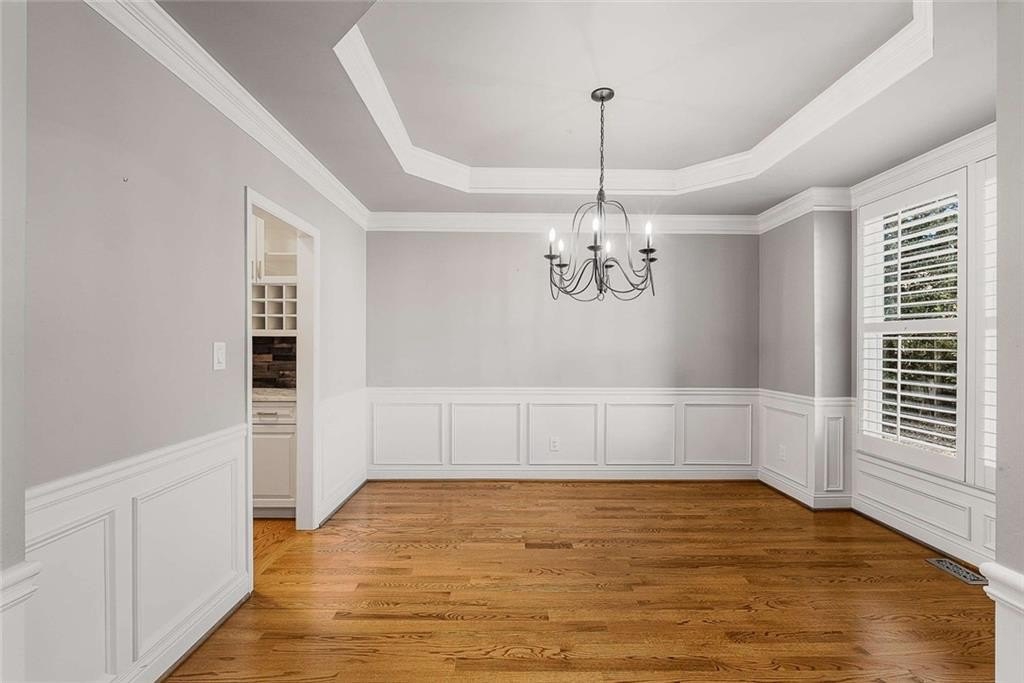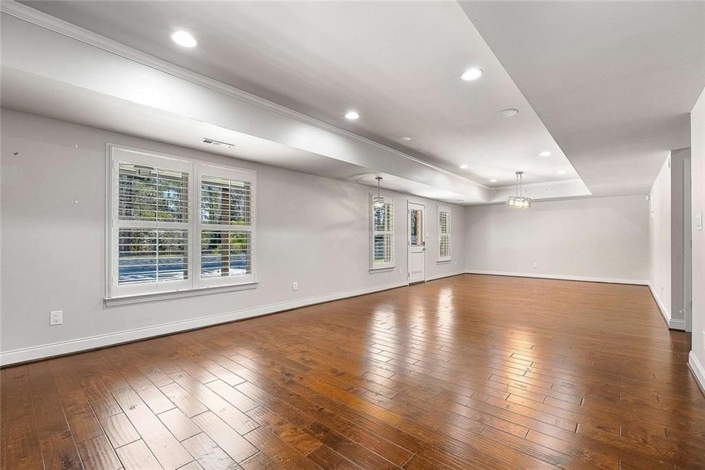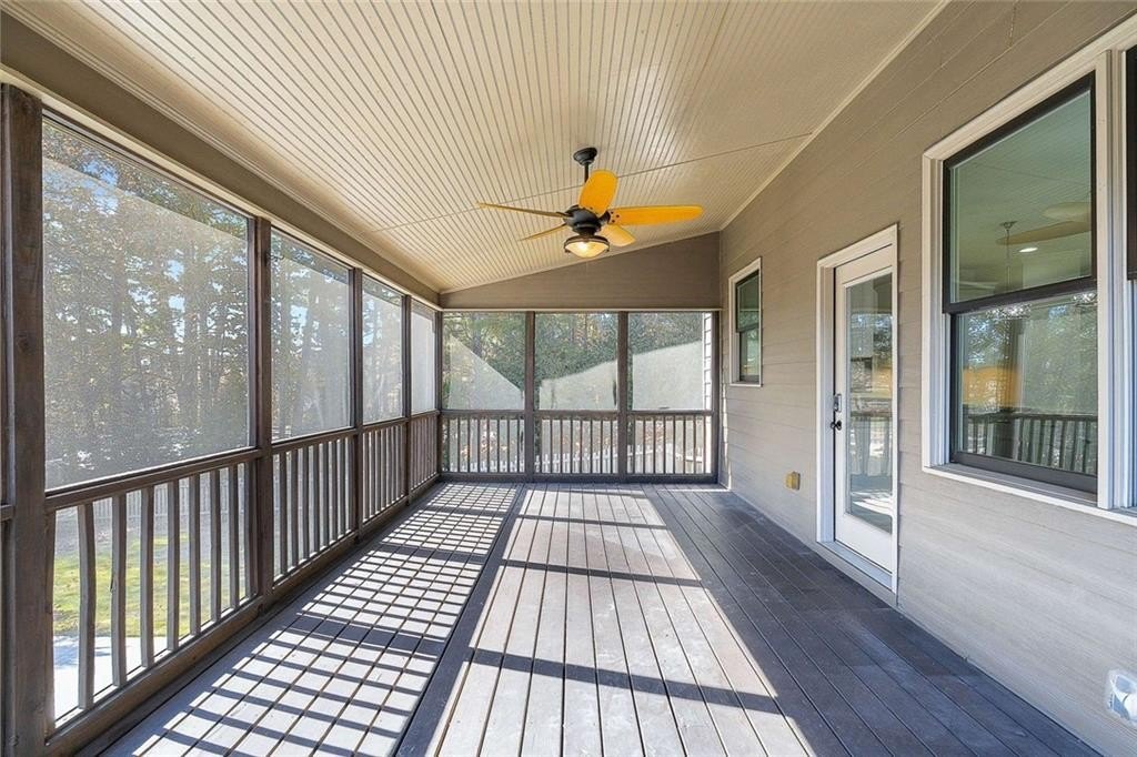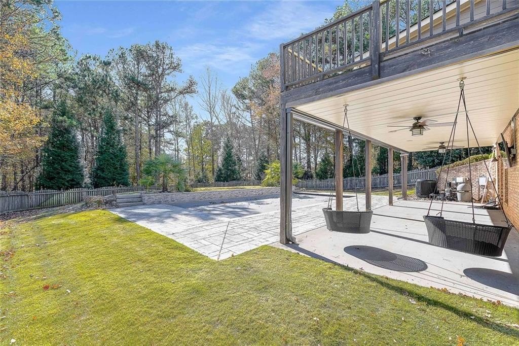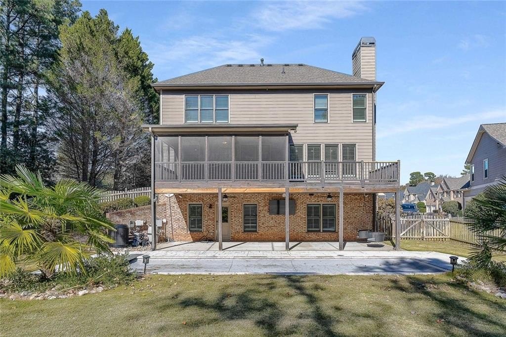 Welcome to this stunning home in the sought-after Hamilton Mill community. Step through the elegant iron doors and into a beautifully appointed residence featuring hardwood floors throughout the main level, upstairs, and in the primary bedroom, you’ll also find plantation shutters throughout the home. Upon entering this home you’ll find the formal dining room with access to the kitchen through the butler’s pantry. The gourmet kitchen is truly a showstopper complete with rich honed granite countertops, a spacious island, six-burner gas range, double ovens, a pantry, and a newer LG dishwasher. The kitchen opens to a bright breakfast area and a cozy den featuring built-in bookcases and a warm fireplace. Just off the kitchen, you can relax or entertain on the screened porch and adjoining deck overlooking the backyard. A main-level bedroom and a beautifully updated full bath with a granite vanity and seamless glass shower complete the first floor. Upstairs, the primary suite offers hardwood floors, two closets, and a luxurious bath. Three additional bedrooms, a full bath, and the laundry room complete the upper level. The finished terrace level adds even more living space, including a large den or media area with built -in bookcases, a full bath, a versatile office or bonus room, and ample storage. Step outside to enjoy the covered patio, fenced yard, and a fabulous in-ground heated and cooled, salt water pool with a retractable cover—perfect for easy maintenance and year-round enjoyment. Hamilton Mill is an active, amenity-rich community close to restaurants, groceries, shopping, parks, schools, medical offices, a library, and I-85.