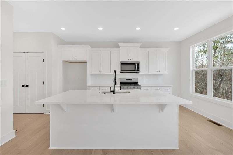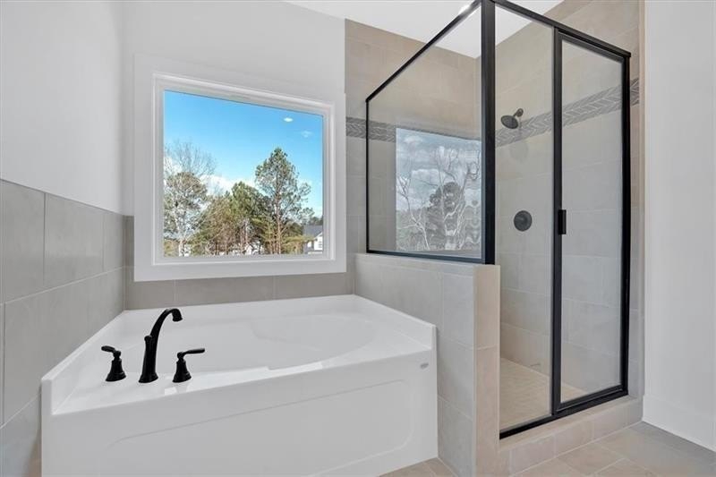 The main level features an inviting great room with a cozy gas fireplace, a modern kitchen with a large island, quartz countertops, and soft-close cabinetry. A bright breakfast area and a versatile flex room enhance the home’s livability and flow. Upstairs, the oversized primary suite provides a true retreat with a generous walk-in closet and a spa-inspired bath featuring a double vanity, separate soaking tub, and a beautifully tiled shower. Two additional bedrooms and a convenient laundry room are also located on the upper level. Enjoy outdoor living on the deck, perfect for relaxing or entertaining.