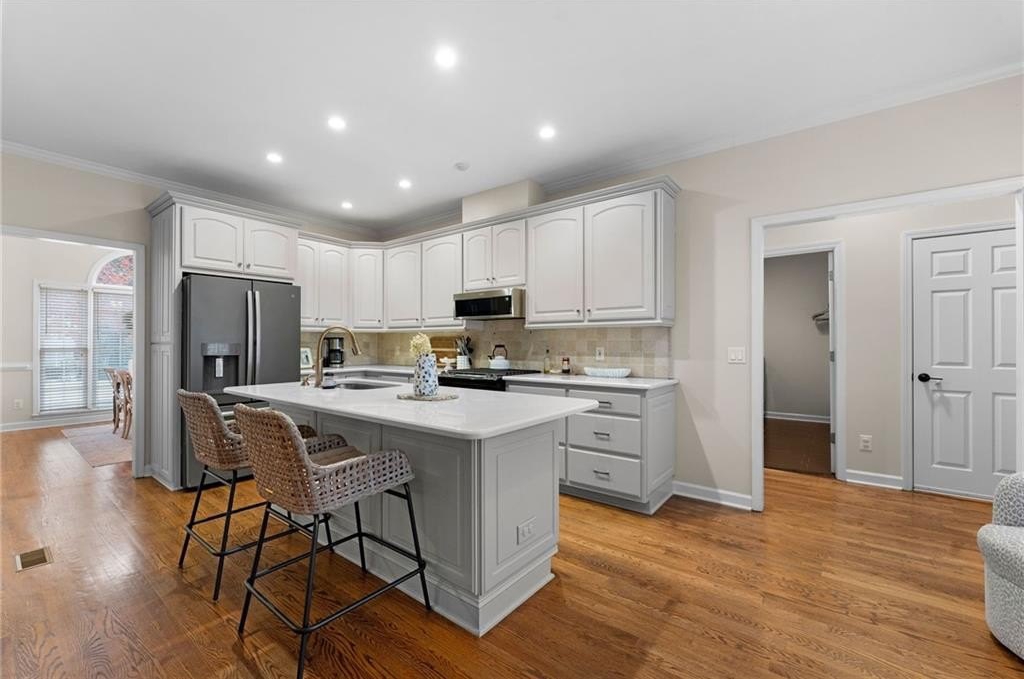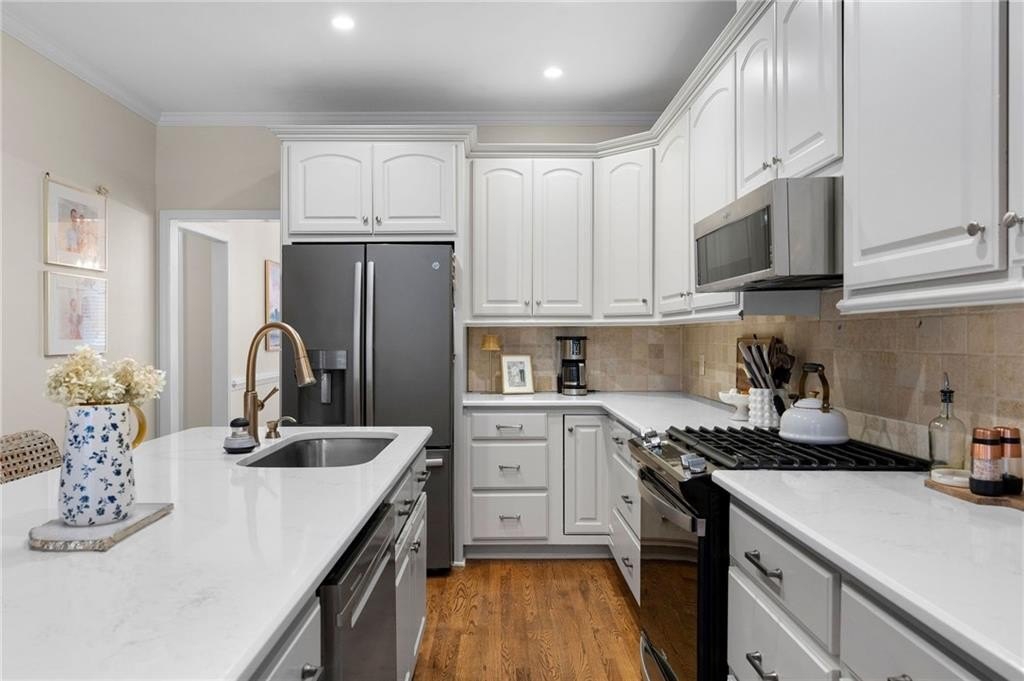 Welcome to this stunning 3-sided brick ranch nestled on a desirable corner lot in the sought-after Waterford subdivision. Offering 4 bedrooms and 3 full baths, this home combines thoughtful updates with exceptional functionality and style. The main level features three bedrooms and two full baths, a spacious family room, and a bright kitchen showcasing new solid surface countertops, stainless steel appliances, new lighting, and all hardwood floors throughout. Fresh interior paint adds a clean, modern feel. A large screened-in back porch overlooks the private, fenced backyard, creating the perfect spot for morning coffee or evening relaxation. A well-appointed laundry room with built-in cabinetry provides excellent extra storage. The full finished basement expands your living options with one bedroom, one full bath, a living room, kitchenette, and abundant storage, along with a workshop and a boat door for added convenience. Outside, enjoy beautiful new landscaping and a side-entry garage that enhances both curb appeal and privacy. This move-in ready home offers space, upgrades, and a prime Cartersville location—ready for its next owner to love.