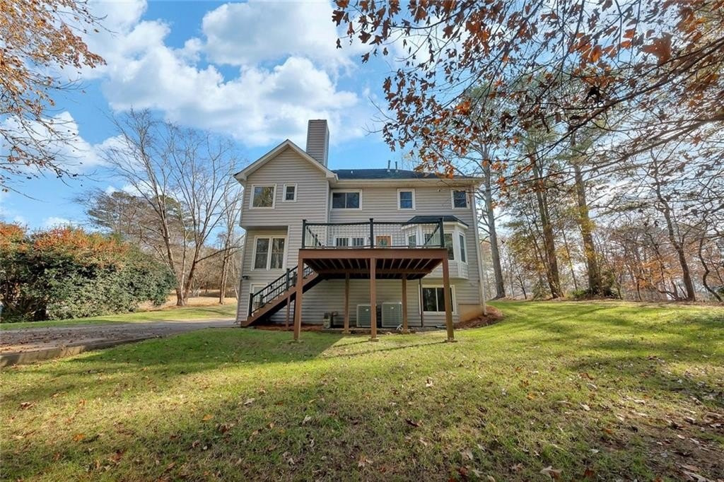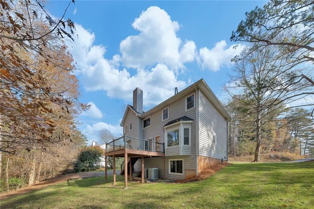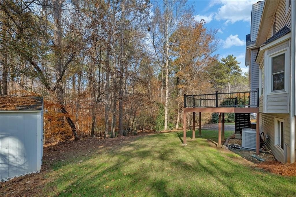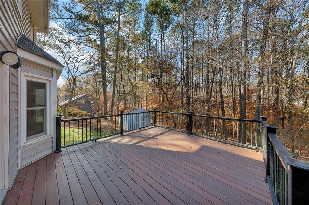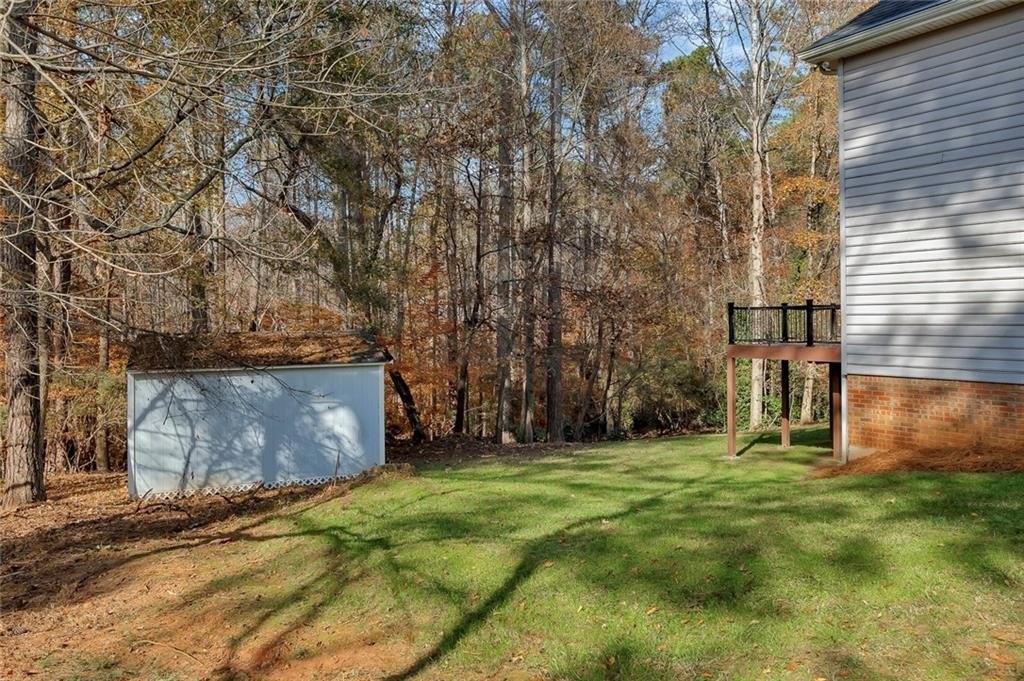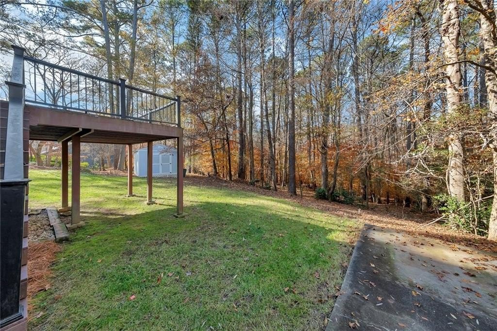 Spacious home in the desirable Tomahawk community, known for its large private lots that offer a peaceful, country feel while remaining just minutes from Woodstock, Roswell, Alpharetta, and Milton. The main level welcomes you with a large flex space—perfect for a home office or formal living room—along with a spacious dining room ideal for gatherings. The bright, eat-in kitchen offers access to the rear deck overlooking the tranquil, 1.45-acre private yard, providing a perfect setting for relaxing or entertaining. A generous family room with a cozy fireplace and a convenient guest bath complete the main level. Upstairs, the oversized primary suite features an ensuite bath with a double vanity, soaking tub, separate shower, and a walk-in closet. Three additional generously sized bedrooms share a hall bath, and the laundry is conveniently located near all bedrooms. The home also includes an unfinished partial basement area that offers excellent potential for future expansion or ample storage space. An outbuilding provides additional storage for yard equipment. The expansive lot offers plenty of space for gardening, play, or simply enjoying the peaceful surroundings. With a bit of updating, this home has the potential to become a truly stunning retreat in a serene yet convenient location.