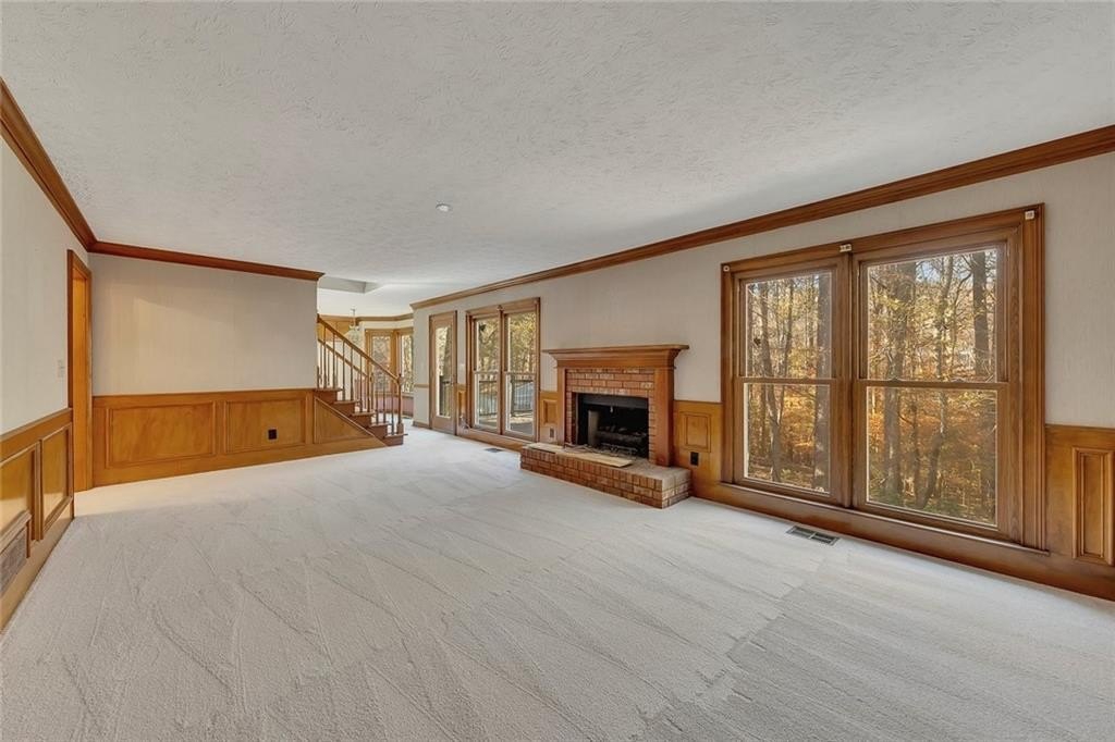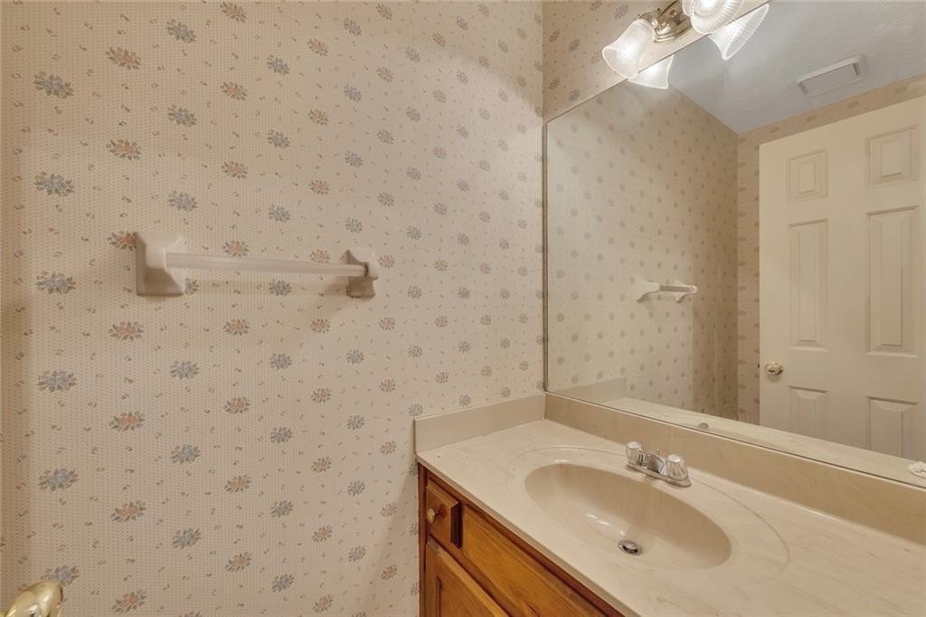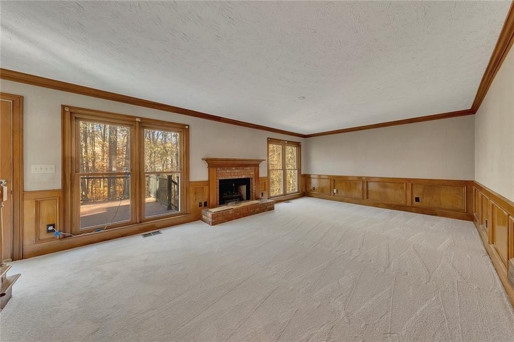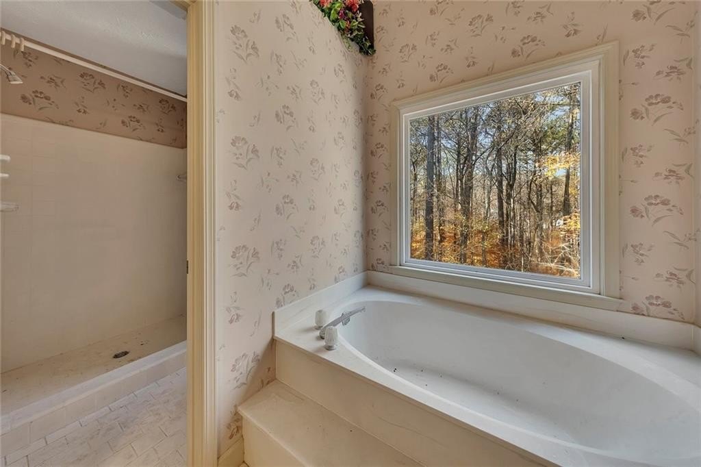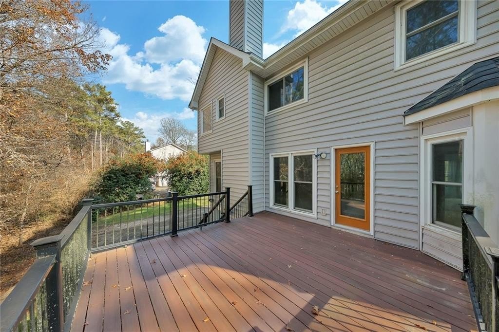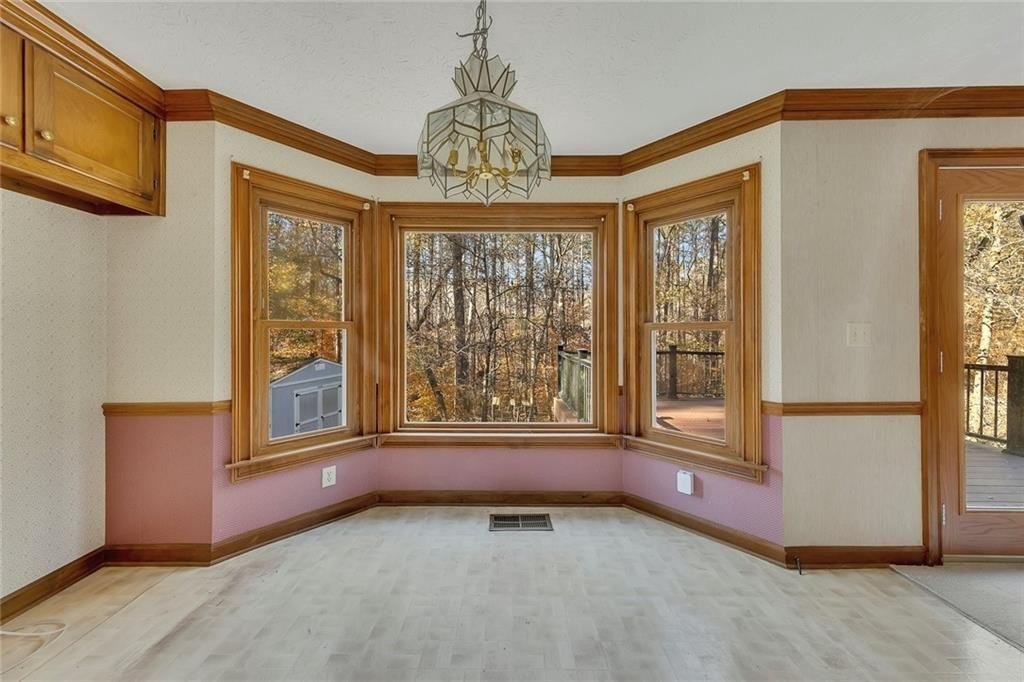 Spacious home in the desirable Tomahawk community, known for its large private lots that offer a peaceful, country feel while remaining just minutes from Woodstock, Roswell, Alpharetta, and Milton. The main level welcomes you with a large flex space—perfect for a home office or formal living room—along with a spacious dining room ideal for gatherings. The bright, eat-in kitchen offers access to the rear deck overlooking the tranquil, 1.45-acre private yard, providing a perfect setting for relaxing or entertaining. A generous family room with a cozy fireplace and a convenient guest bath complete the main level. Upstairs, the oversized primary suite features an ensuite bath with a double vanity, soaking tub, separate shower, and a walk-in closet. Three additional generously sized bedrooms share a hall bath, and the laundry is conveniently located near all bedrooms. The home also includes an unfinished partial basement area that offers excellent potential for future expansion or ample storage space. An outbuilding provides additional storage for yard equipment. The expansive lot offers plenty of space for gardening, play, or simply enjoying the peaceful surroundings. With a bit of updating, this home has the potential to become a truly stunning retreat in a serene yet convenient location.