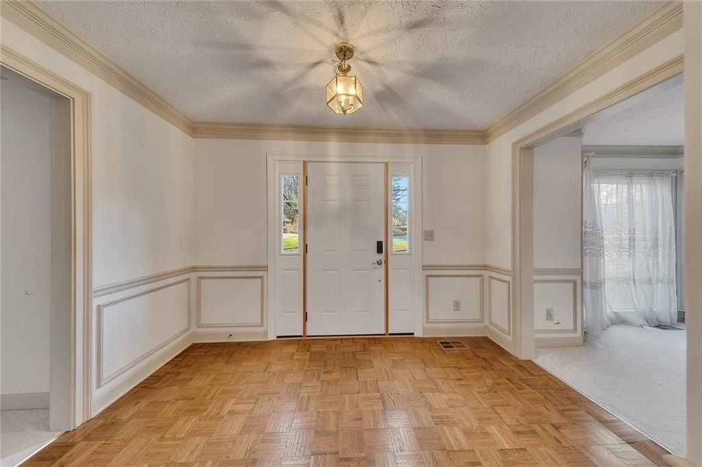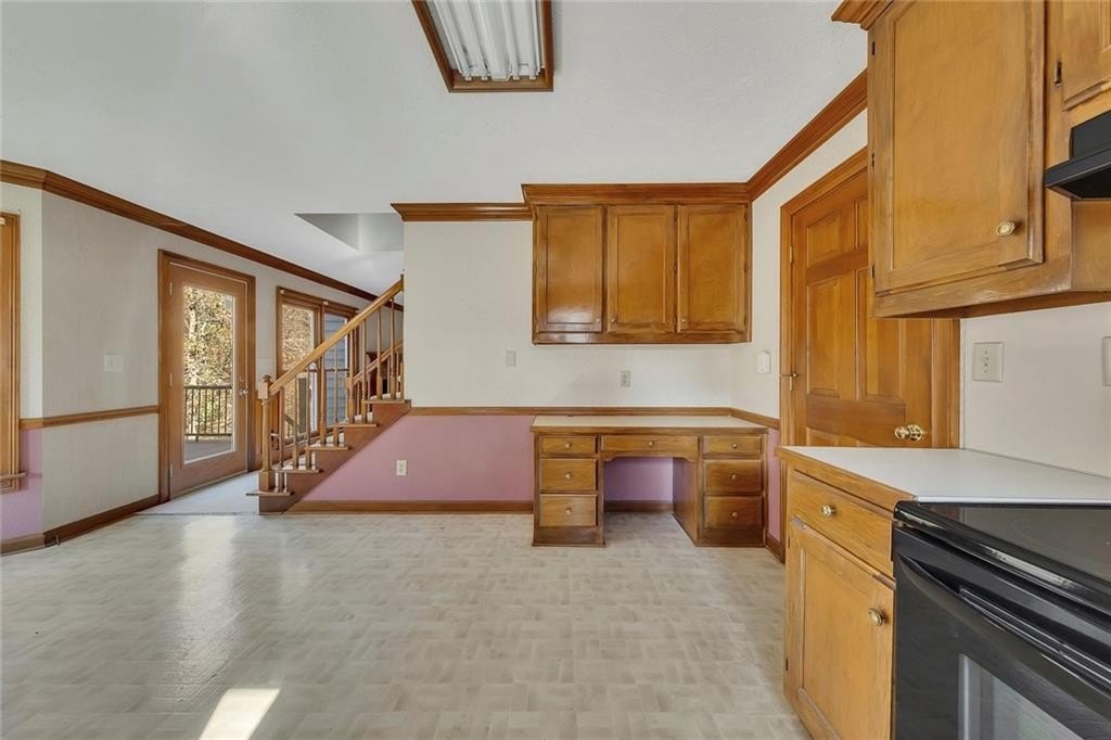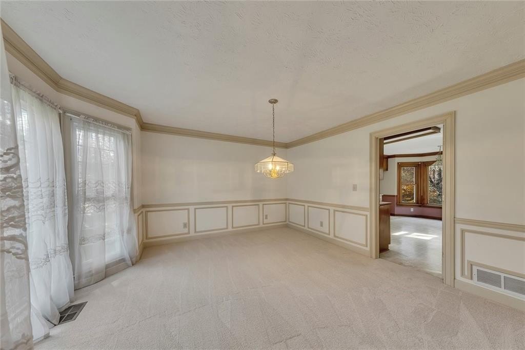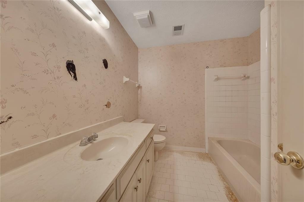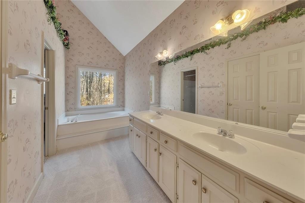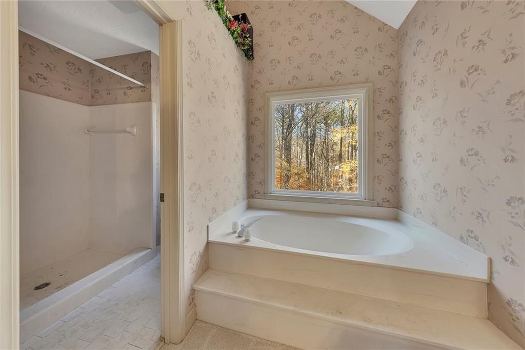 Spacious home in the desirable Tomahawk community, known for its large private lots that offer a peaceful, country feel while remaining just minutes from Woodstock, Roswell, Alpharetta, and Milton. The main level welcomes you with a large flex space—perfect for a home office or formal living room—along with a spacious dining room ideal for gatherings. The bright, eat-in kitchen offers access to the rear deck overlooking the tranquil, 1.45-acre private yard, providing a perfect setting for relaxing or entertaining. A generous family room with a cozy fireplace and a convenient guest bath complete the main level. Upstairs, the oversized primary suite features an ensuite bath with a double vanity, soaking tub, separate shower, and a walk-in closet. Three additional generously sized bedrooms share a hall bath, and the laundry is conveniently located near all bedrooms. The home also includes an unfinished partial basement area that offers excellent potential for future expansion or ample storage space. An outbuilding provides additional storage for yard equipment. The expansive lot offers plenty of space for gardening, play, or simply enjoying the peaceful surroundings. With a bit of updating, this home has the potential to become a truly stunning retreat in a serene yet convenient location.