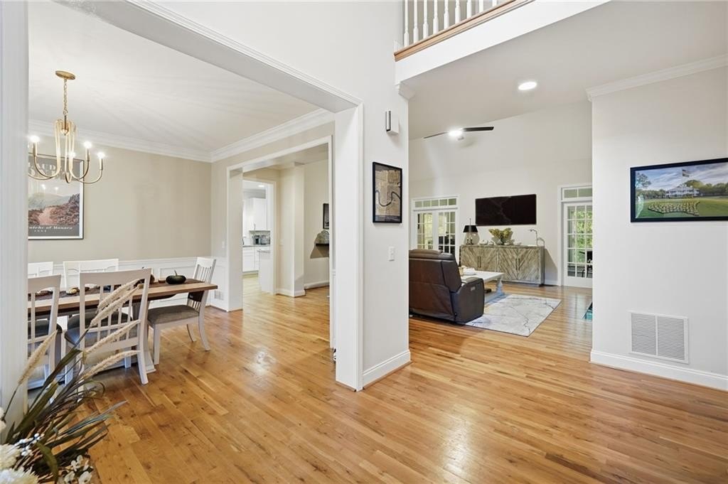 Welcome to 320 Allendale Drive. This place is the definition of peaceful living with a solid ranch style home on two gorgeous acres and a full daylight basement. It sits in Fossett Farms, an equestrian inspired community in the Birmingham and Freehome area, surrounded by multi million dollar farms and estates. It feels like a private retreat but still close to everything you need. Pure perfection. Come through the gate from the cul de sac and the home opens up on a hilltop with plenty of parking. The front path takes you straight to a massive stone rocking chair porch that is made for sunset watching. Step inside and you get a grand two story foyer leading into the formal dining room. The layout is open and bright with real hardwood floors. The great room has a cozy gas fireplace, built in bookcases, and double French doors that take you into the vaulted sunroom with LVP brick floors and tons of natural light. The primary suite sits tucked away on the main level and overlooks the backyard. It has a large walk in closet and a relaxing bath that feels like a spa day waiting to happen. The kitchen is fully renovated and absolutely stunning. You get a six burner gas range, exotic granite, dove white cabinets, brushed gold hardware, and real marble tile. The mudroom gives you even more storage plus a garage entry and a separate laundry room. The breakfast room looks out over the backyard and opens to the covered stone porch which makes it perfect for morning coffee or a slow weekend brunch. Wander the stone paths around the property and you will hear songbirds nonstop. The landscaping is dreamy with magnolias, hydrangeas, mountain laurel, camellias, daffodils, Cherokee roses, and a long list of beautiful trees and blooming plants. There is also a lofted barn that adds even more character. From the mudroom side porch, there is a private entrance to the back staircase which leads to a great teen or parent suite. It has a bedroom, a vaulted bonus room that could be a fourth bedroom, and a full bath. The main staircase leads to a loft space that works perfectly as an office or reading nook. There is another bedroom upstairs with its own private bath and a huge walk in closet. The terrace level runs the full footprint of the home with high ceilings and great natural light. The drywall, electrical, and some ceilings are already in place. There is a second laundry room down there along with built in cabinetry and more storage. This home gives you the best mix of quiet country living and quick access to modern conveniences, amenities, and the incredible Cherokee County schools.