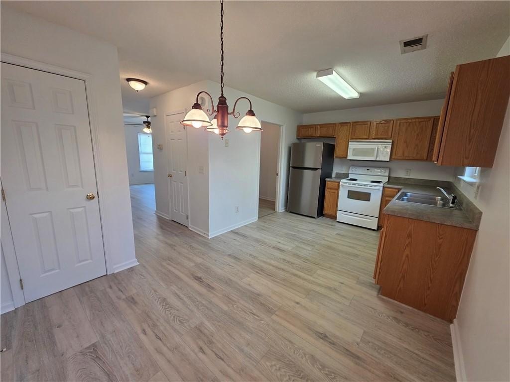 Welcome home to this beautifully updated two-story townhouse featuring 2 bedrooms and 2.5 baths in a well-maintained HOA community. Step inside to find a freshly painted interior walls and brand-new LVP flooring throughout,(plus upgraded carpet & pad on the stairs) offering a clean, modern, and low-maintenance living space. The thoughtful layout provides an inviting main level with living, dining, kitchen, laundry room and a half bath, while both bedrooms upstairs offer comfort and privacy with each having a full bathroom and a spacious closet.