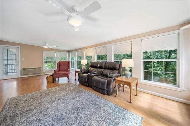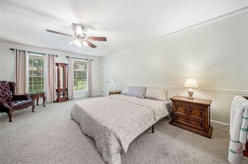 Welcome home to this spacious traditional home located in a highly desired area, convenient to Kennesaw College with no HOA. This 6 bedroom, 5 bath home would make for a great home for a large family or college students attending Kennesaw State. Step inside to a classic layout with the kitchen featuring an island with lots of cabinets as well as a breakfast area and formal dining room providing a functional layout for everyday cooking or entertaining. The heart of the home is the cozy den featuring a gas log fireplace and the large sunroom with panoramic windows perfect for enjoying your morning coffee. A large primary suite is located on the main floor with a cozy sitting area, an updated ensuite bath with a double vanity, walk-in tiled shower and walk-in closet. A full bathroom on the main floor provides convenience and privacy for visitors. Upstairs, you will find another expansive primary suite with a cozy sitting area, an ensuite bath with a shower, and double vanity. Two additional bedrooms are located upstairs with each having a full bath. The finished terrace level includes a large den, two bedrooms, an office, workshop and storage with exterior entry to a deck and backyard that is cleared and level with additional parking. The home sits on a double lot perfect for enjoying outdoor gatherings. This home is the perfect blend of space, style, and location with easy access to I-75 and 575 and lots of shopping and numerous dining options just minutes away.