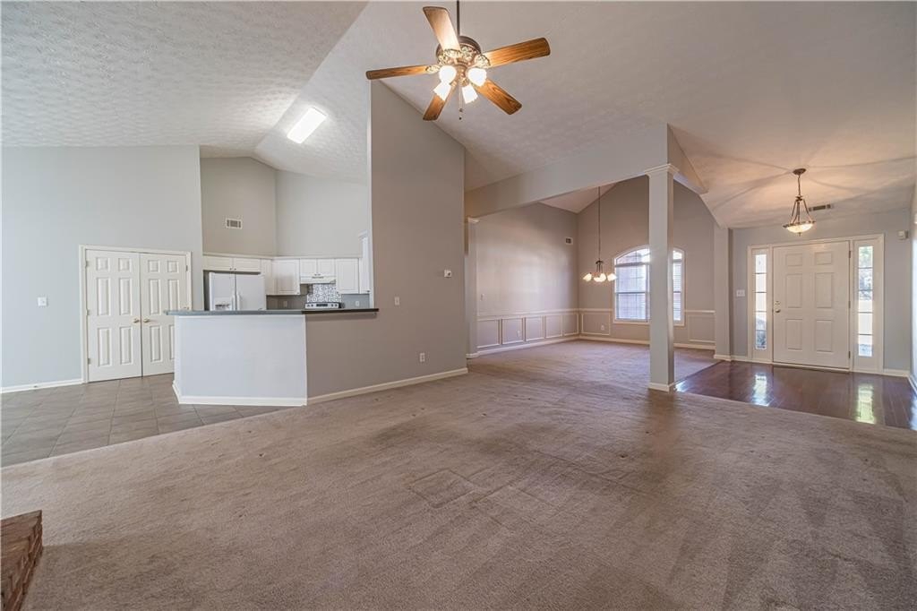 As you step inside, you'll be welcomed by a spacious open floor plan that includes a warm foyer with beautiful hardwood floors. The formal dining room boasts soaring ceilings, perfect for festive gatherings, and the spacious family room with a double-sided fireplace creates a cozy atmosphere. Plus, there’s a sunroom/flex room overlooking the private backyard, ideal for relaxing or enjoying your morning coffee!