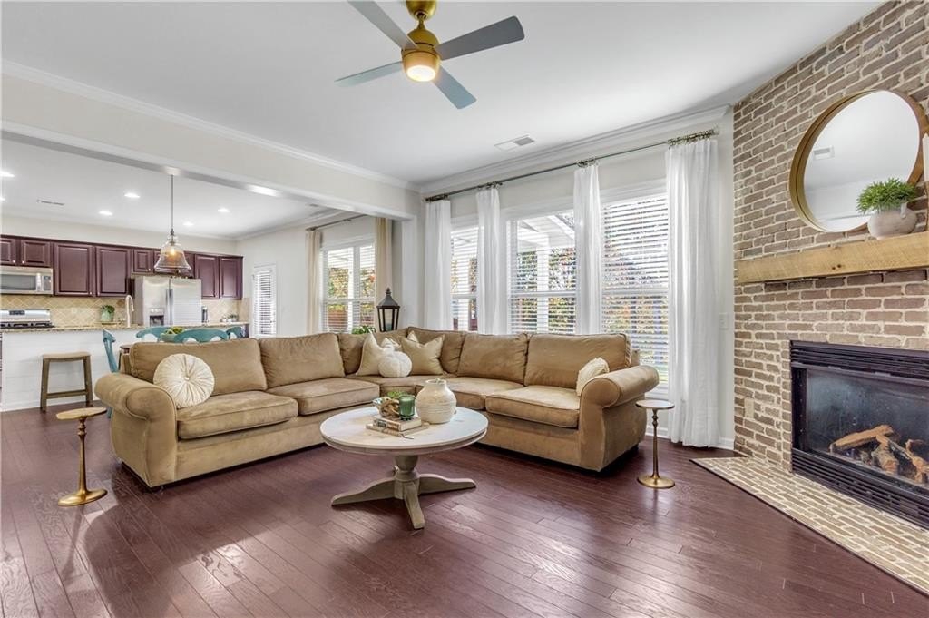 2 Story Brick Traditional w/Covered Entry & New Roof! New Paint Inside & Out! Full Hardwoods On The Main. Formal Dining Room Has Upgraded Lighting. Kitchen Features Espresso Cabinets w/Granite Countertops, Stainless Appliances (New Dishwasher) & Tile Backsplash. Walk-In Pantry Has Upgraded Wood Shelves. Island w/Shiplapped Breakfast Bar & Eat In Breakfast Area Open To Family Room w/Upgraded Lighting & Refinished Brick Fireplace That Has Gas Logs & Custom Mantle. Shiplapped 1/2 Bath w/Upgraded Vanity, Tile & Lights! Convenient Drop Zone/Mudroom By Garage. Enjoy The Flat, Wooded, Fenced Backyard From The New $15,000 Back Porch w/Tile Floors & Outdoor TV! Iron Spindle Back Staircase Leads To Second Level w/New Upstairs HVAC Unit! Primary Bedroom Has Vaulted Ceiling & Wall Of Windows. Luxury Primary Bath Has Upgraded Tile, Tall Vanities, Separate Garden Tub & Shower & Large Walk-In Closet w/Shelves For Shoes. 3 Additional Bedrooms All Feature Vaulted Ceilings & Share Secondary Bath w/Espresso Vanity, Upgraded Tile & Bath w/Ceramic Tile Surround & Linen Closet. Convenient Upstairs Laundry. Enjoy Stonehaven Pointe World Class Amenities, Top Rated Schools & Fantastic Location Close To GA400, Halcyon, Avalon!