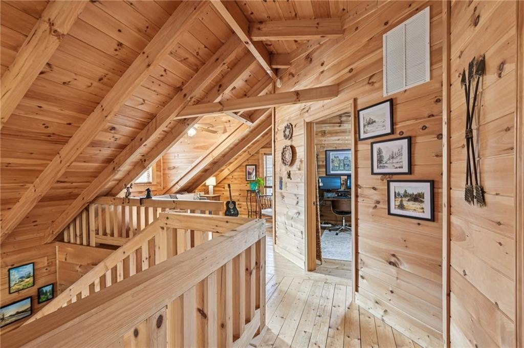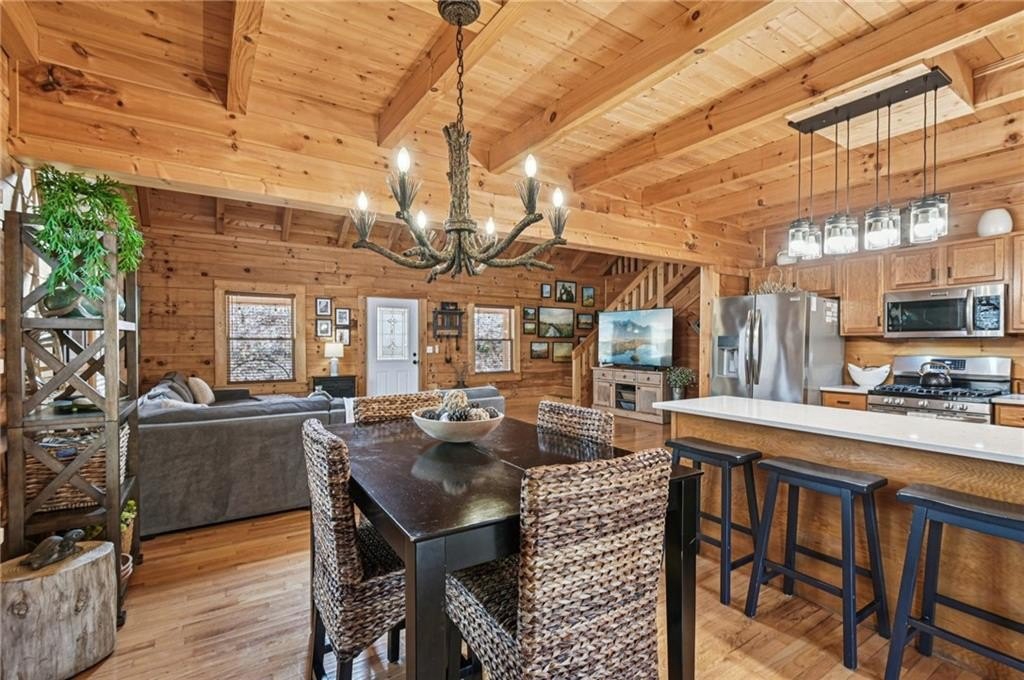 Enjoy peaceful mountain living in Cherokee County on 2.19 private, wooded acres with no HOA! This charming log home offers vaulted ceilings, a loft, tons of natural light, and quartz kitchen countertops with newer SS appliances (2023) plus a new washer (2025). Major systems are updated, including HVAC (<5 yrs), metal roof (<8 yrs), tankless water heater, spray-foam insulation, and a recently serviced septic system. Enjoy custom blinds throughout. Relax outdoors on fully covered front and back decks, or retreat to the private deck with a Swedish barrel sauna. Wildlife sightings are common, and morning light streams through the vaulted windows. A stream runs on the property for added natural charm! The oversized drive-under garage and basement level offer excellent flex space for a workshop, gym, or storage, and there’s plenty of parking—including a full gravel pad for a boat, trailer, or RV. A leased whole-home generator (transferable) provides peace of mind, and multiple internet options are available thanks to a nearby T-Mobile tower. Located on a quiet cul-de-sac with large lots and minimal traffic, this home feels tucked away yet remains close to Canton, Woodstock, Cartersville, Wilderness Camp Marina (Lake Allatoona), major highways (I-75 & I-575), and a popular winery right across the main road. Under an hour to Atlanta for commuters or airport access. A perfect blend of privacy, convenience, and mountain-style living. Don't miss your opportunity - book your tour today!
