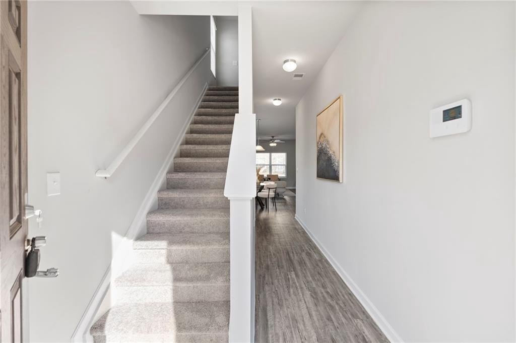 Welcome to this exceptional 6-year-old END-UNIT townhome, designed with contemporary living in mind. Perfect for first time HOMEOWNERS or INVESTORS! Featuring 3 spacious bedrooms and 2.5 baths, this home is a charmer! As you step inside, you'll be greeted by the open and inviting main level, adorned with LVT flooring. The modern kitchen is a chef's delight, boasting granite countertops, sleek white cabinetry, and stainless steel appliances. Ample storage is provided by a spacious pantry, and the main level also includes a convenient half bath for guests. The outdoor patio offers a perfect spot for relaxation or entertaining, seamlessly blending indoor and outdoor living. Venture upstairs to discover the thoughtfully designed split-bedroom plan. The private owner's suite is a true retreat, featuring an enormous master closet and a spacious master bathroom with elegant fixtures. Two additional bedrooms provide plenty of space for family or guests, complemented by a full bathroom that ensures comfort for all. This home also includes a 1-car garage, offering both parking and additional storage options. High-end washer and dryer units are included, making laundry a breeze. Located in the vibrant city of Decatur, this home combines style and functionality, making it the perfect place to call home. Don't miss the opportunity to experience luxury living in this beautifully maintained townhome!