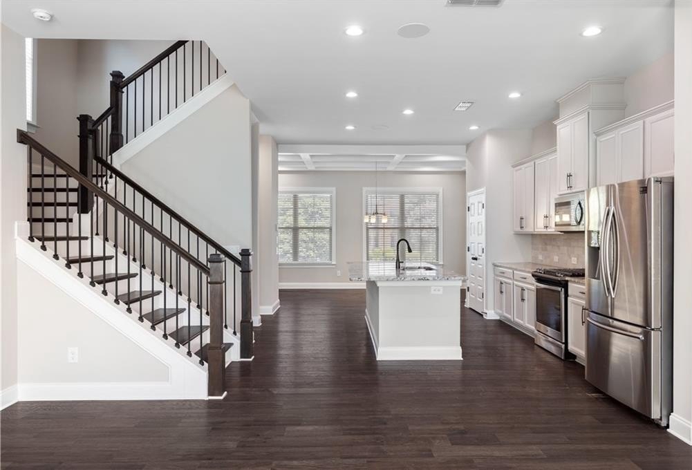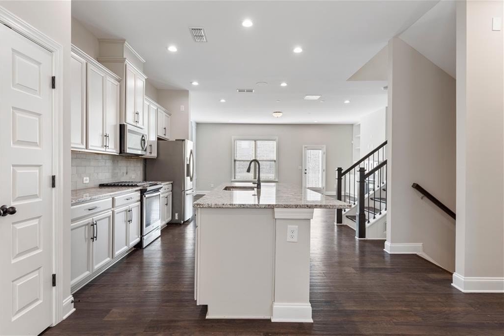 The main level features a cozy living room with a fireplace and a guest powder room. Upstairs, you’ll love the oversized, upgraded master closet. Need a private guest suite or home office? The terrace-level 4th bedroom has a full bath and generous closet space.