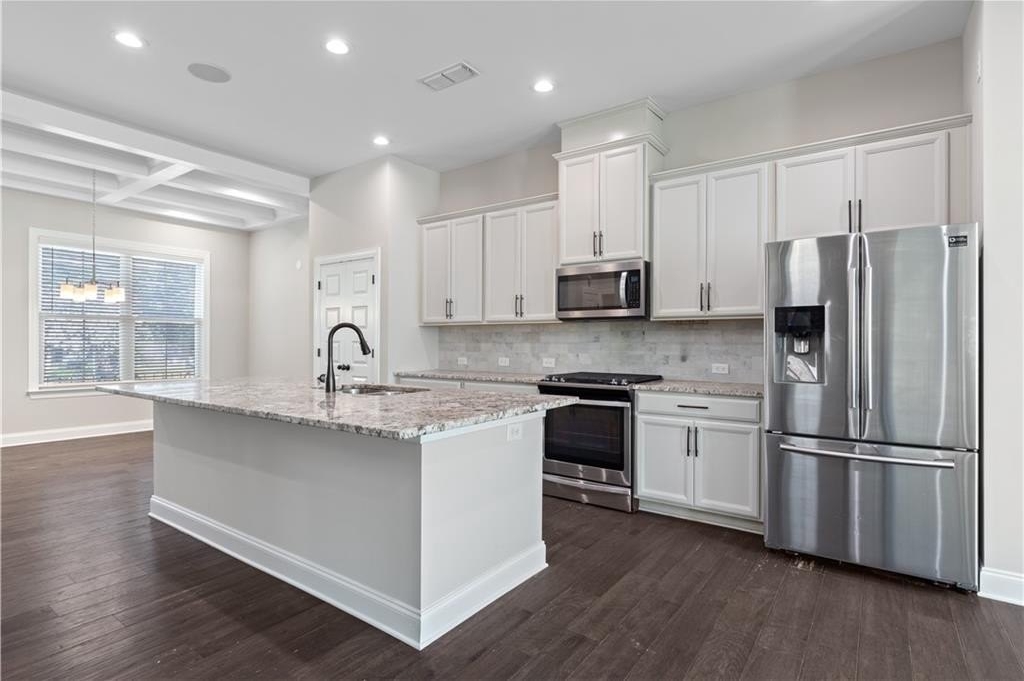 Welcome to this 3-sided brick END-UNIT townhome in a sought-after community, where classic charm meets modern ease. Inside, enjoy a bright open layout with hardwood floors, a spacious dining area, and a sleek kitchen with stainless steel appliances, granite island, and tons of cabinet space—perfect for cooking and hosting.