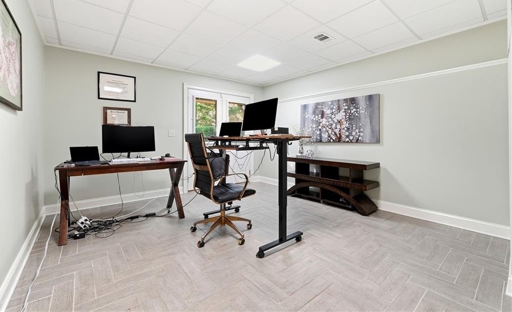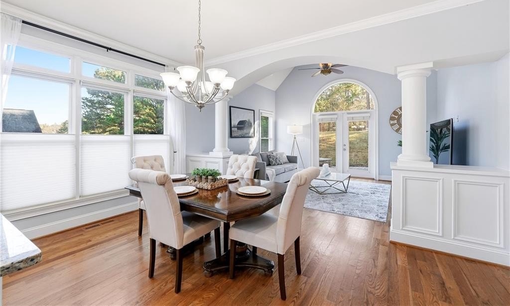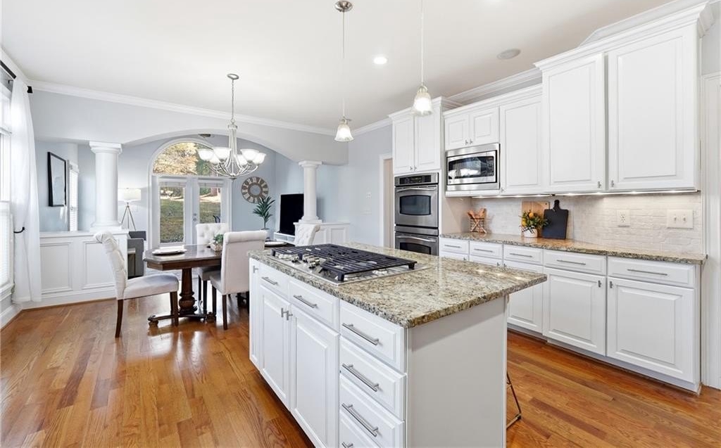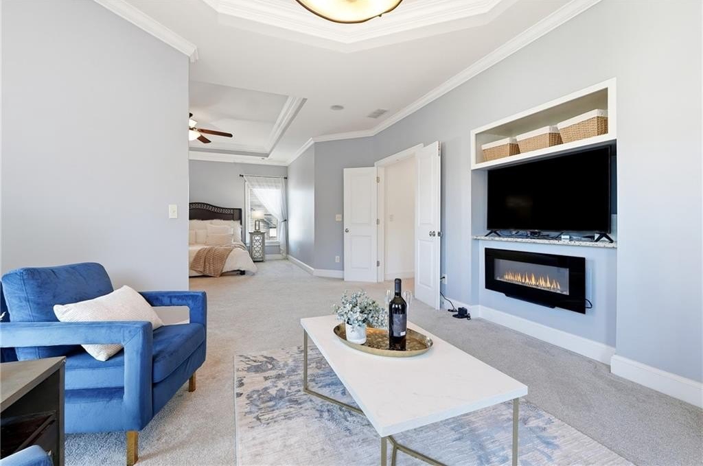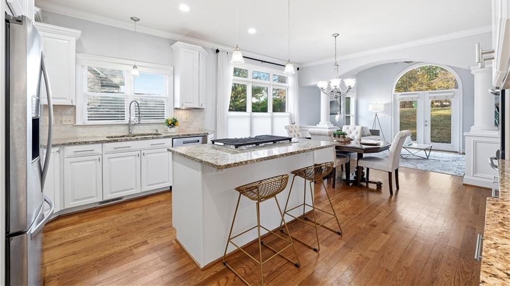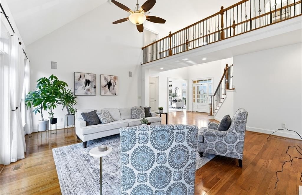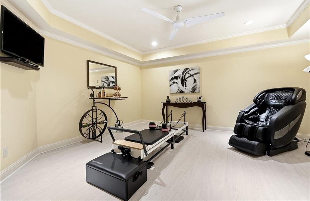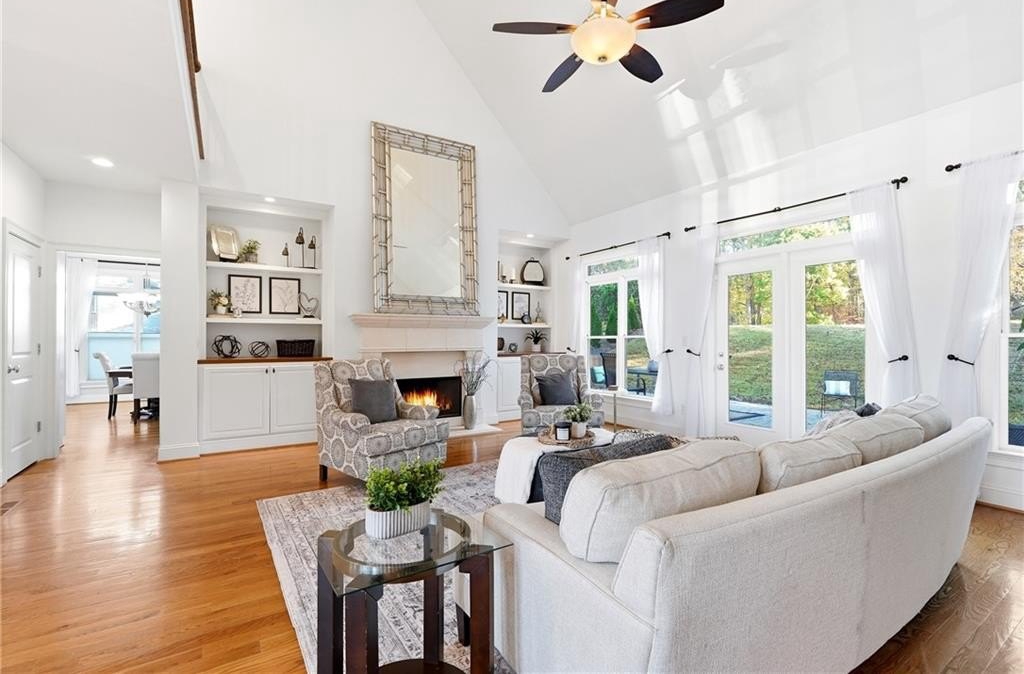 Experience luxury living at its finest with this stunning turn-key builder’s custom home, boasting golf course and lake views that set a remarkable backdrop for every day. The elegant family room soars with a vaulted ceiling and opens to a expansive rear patio complete with an outdoor kitchen, ideal for seamless entertaining. A chef’s dream kitchen features abundant cabinetry overlooking the breakfast area and keeping room, while a dedicated study, formal dining, and a guest room with private bath on the main level offer versatile living spaces. Upstairs, the master suite indulges with a sitting area and fireplace that overlook the tranquil lake, accompanying a lavish spa bath with heated tile floors, dual shower heads, a soaking tub, and generously sized his-and-hers closets. The finished basement presents a media area, gym, a bedroom with private bath, storage, and a quintessential craftsman’s workshop with convenient garage access and a wash tub. A three-car garage provides walk-up storage space for added convenience. This residence also features a nearly new roof (installed two years ago) with new gutters, refreshed basement flooring and stairs, a redesigned master bathroom countertop, a new main AC unit, and new water heaters, delivering exceptional comfort and reliability throughout.