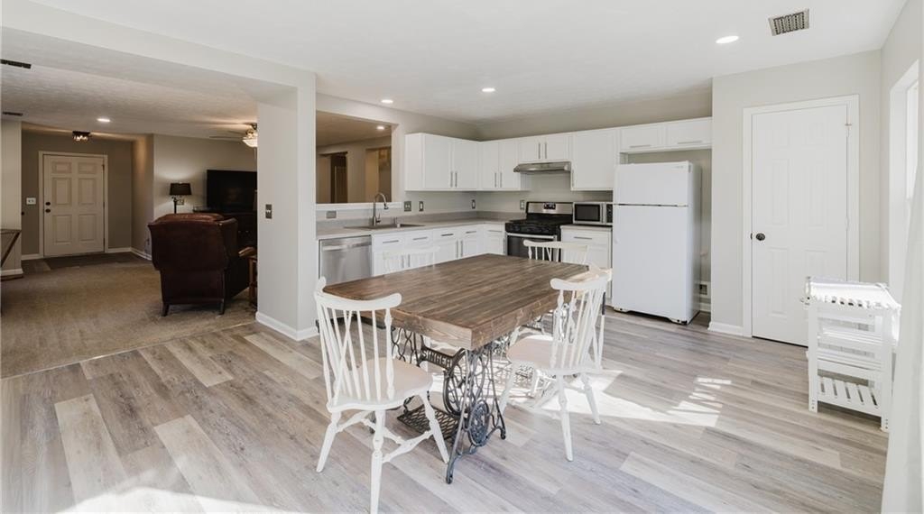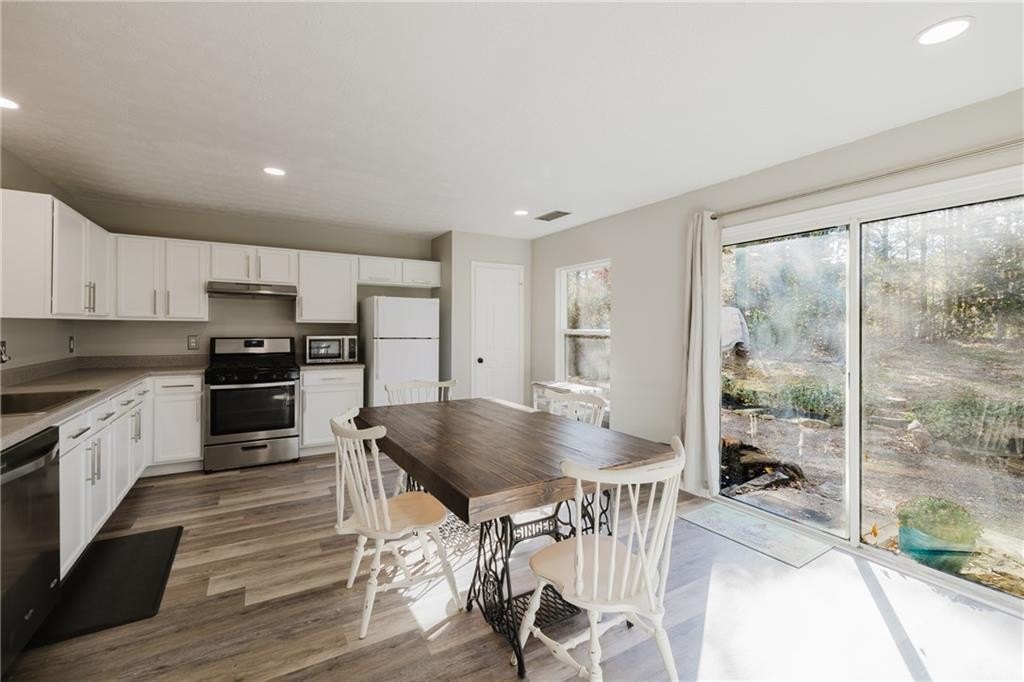 Charming 3-bedroom, 2-bath ranch offering easy one-level living on a beautiful, level lot of over one-third acre. Ideally located in a lovely neighborhood with quick access to Dallas-Acworth Highway, shopping, dining, and schools. This home features low-maintenance vinyl siding, TWO YEAR NEW ROOF and a two-car garage. Inside, you’ll find a bright and welcoming layout with neutral interior paint and abundant natural daylight throughout. The spacious kitchen includes white cabinetry, stainless steel appliances, LVP flooring, and plenty of room for cooking and gathering. All bedrooms are conveniently located on one level. The primary suite features a large walk-in closet, a bath with LVP flooring, a shower/tub combo, and a roomy vanity area. Both secondary bedrooms share a full bath with LVP flooring, a shower/tub combo, and a generous vanity. Additional highlights include a large walk-in laundry room with white cabinetry and no popcorn ceilings throughout. Enjoy outdoor living in the private, fenced backyard featuring a small firepit area and serene koi pond. The spacious, level backyard is perfect for relaxing, entertaining, and makes the most of the over one-third acre lot. Move-in ready and ideally situated, this home blends comfort, style, and convenience in one inviting package.