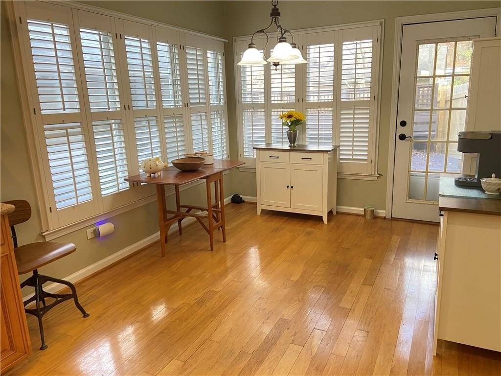 Rare opportunity to enjoy the lifestyle that Scott Commons offers. Fantastic location walkable to downtown Decatur but without the City of Decatur taxes! This spacious cluster home on a corner lot offers an owner's suite on the main and an attached 2 car garage. You'll love this simple lifestyle with all yard maintenance included in your HOA. Enter the front to a soaring 2-story living area with a gas fire place. The windows with wooden shutters allow for a light filled space to relax and enjoy. The large kitchen has ample stone countertops and cabinets, an island with breakfast bar and a nice breakfast area surrounded by windows to enjoy coffee and the sunlight. The separate dining room can accommodate family and friends for holiday entertaining and functions. The large deck off of the kitchen has a gas grill and built in seating with a privacy fence. Upstairs the second level has a large bedroom and an additional bedroom that share a Jack and Jill bath with separate vanity areas. The 2 car garage conveniently leads into the kitchen for easy unloading and security. Updates: Roof and skylights 2021, Furnace 2022, Plumbing Replaced with PEK 2024, 1 HVAC replaced 2024, EV 240v added 2023, Garage Doors 2025, Paint and Carpet 2025 and more! Looking for WALKABILITY? Sprouts Farmers Market, First Watch, Ace Hardware, Whole Foods, Bad Daddy Burger Bar, Hollywood Feed and so many other stores for shopping ALL less that 1/2 mile away. Glenlake Tennis, Swimming Pool and Dog Park also just 1/2 mile away. Enjoy a stroll to downtown Decatur ... just 1 mile! If you are looking for a great lifestyle without all of the lawn maintenance don't pass this one up. No rent restrictions after 2 years of ownership occupancy. Come enjoy all that Decatur has to offer without the City of Decatur taxes!