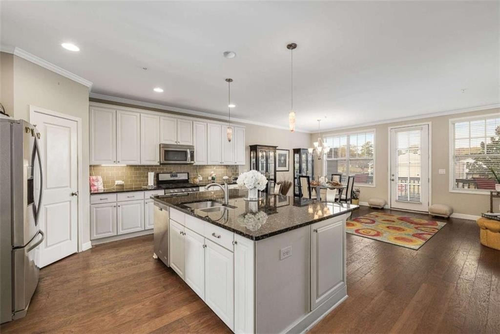 *Showings begin Black Friday, November 28th, at Noon. Step inside this John Weiland-built and designed townhome. Discover a main level designed for unforgettable gatherings and effortless everyday living. Warm hardwood floors flow throughout the entire level, creating a seamless and inviting atmosphere. At the center of it all, the expansive kitchen truly acts as the heart of the home, anchoring the living space with abundant white cabinets, granite countertops, stainless steel appliances, a spacious island perfect for conversation, and a generous walk-in pantry. The bright living room is filled with natural sunlight and features custom-built-in bookshelves flanking a cozy fireplace, offering both charm and functionality. The dining area is wrapped in windows for exceptional light and features a keeping room and a private balcony that's ideal for enjoying your morning coffee or evening breeze. A thoughtfully tucked-away office nook provides a quiet, efficient work-from-home space while keeping the main living areas reserved for entertaining and relaxation. Retreat to a private primary suite designed for purecomfort and serenity. This oversized haven features large windows that fill the room with soft natural light, creating the perfect backdrop for quiet mornings or peaceful evenings. A spacious walk-in closet offers exceptional storage and organization. The spa-inspired bath completes the suite with luxury at every turn. The dual vanities allow for effortless morning routines, a relaxing soaking tub, a separate glass-enclosed shower, and a private water closet. This is your personal sanctuary, thoughtfully crafted to elevate your everyday living. Whether hosting guests, growing your household, or carving outflexible space, the additional bedrooms offer comfort and versatility. Upstairs, you'll find two generously sized bedrooms sharing a well-appointed full bath, each featuring large closets and plush carpeting for warmth and comfort. On the terrace level, a private bedroom with its own ensuite bath provides an ideal option for guests, in-laws, or a quiet retreat. With thoughtful design and ample storage, every bedroom in this home offers room to relax, recharge, and make your own. Conveniently located in proximity to Battery Atlanta / Smyrna Market Village / Silver Comet Trail / Chattahoochee River National Recreation Area / Kroger Village / Restaurants / Shops / Night Life, and the I-285 & I-75 corridor. You are going to love living at Concord Hall. Call the agent to ask about the carpet allowance.